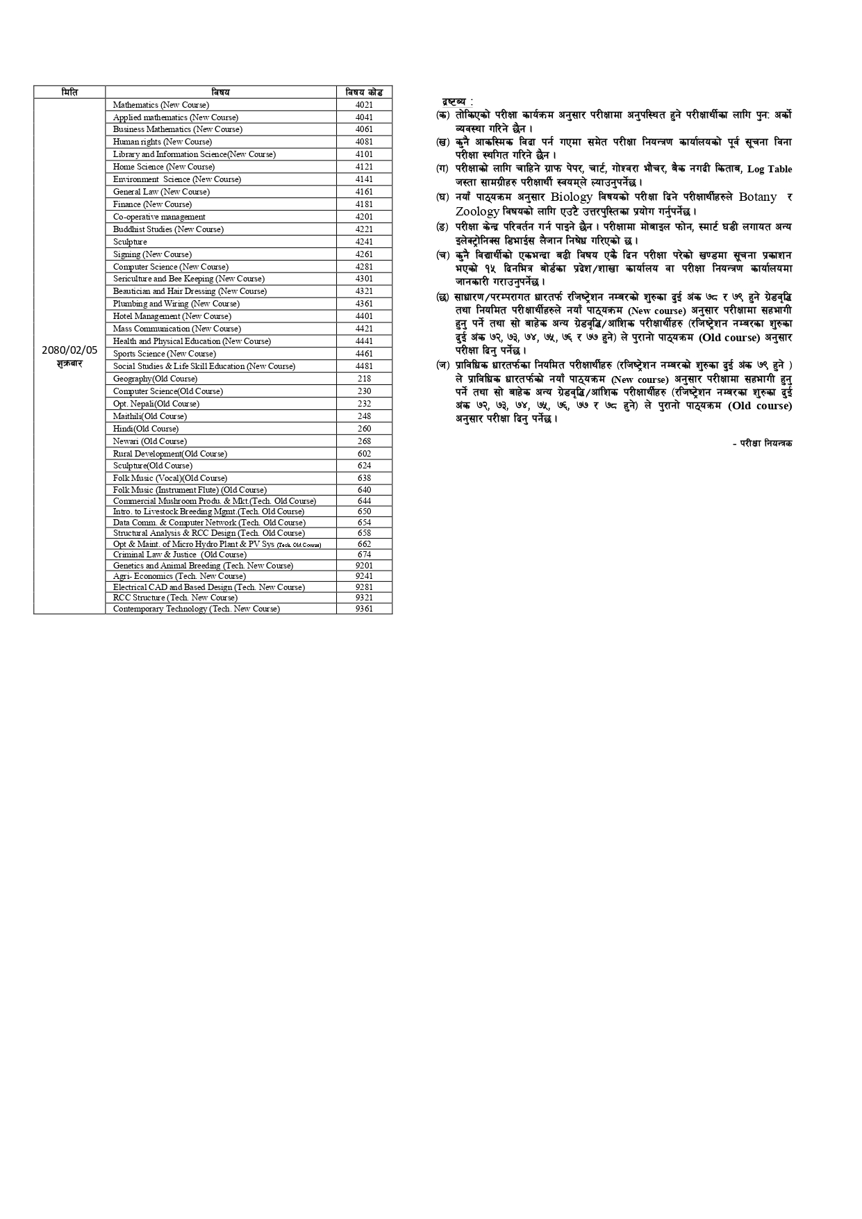 यसैगरी, प्राविधिक धारतर्फका नियमित परीक्षार्थीहरु (रजिष्ट्रेशन नम्बरको शुरुका दुई अंक ७९ हुने ) ले प्राविधिक धारतर्फको नयाँ पाठ्यक्रमअनुसार परीक्षामा सहभागी हुनु पर्ने तथा सो बाहेक अन्य ग्रेडवृद्धि/आंशिक परीक्षार्थीहरु (रजिष्ट्रेशन नम्बरका शुरुका दुई अंक ७२, ७३, ७४, ७५, ७६, ७७ र ७८ हुने) ले पुरानो पाठ्यक्रम अनुसार परीक्षा दिनु पर्ने बोर्डले जनाएको छ ।