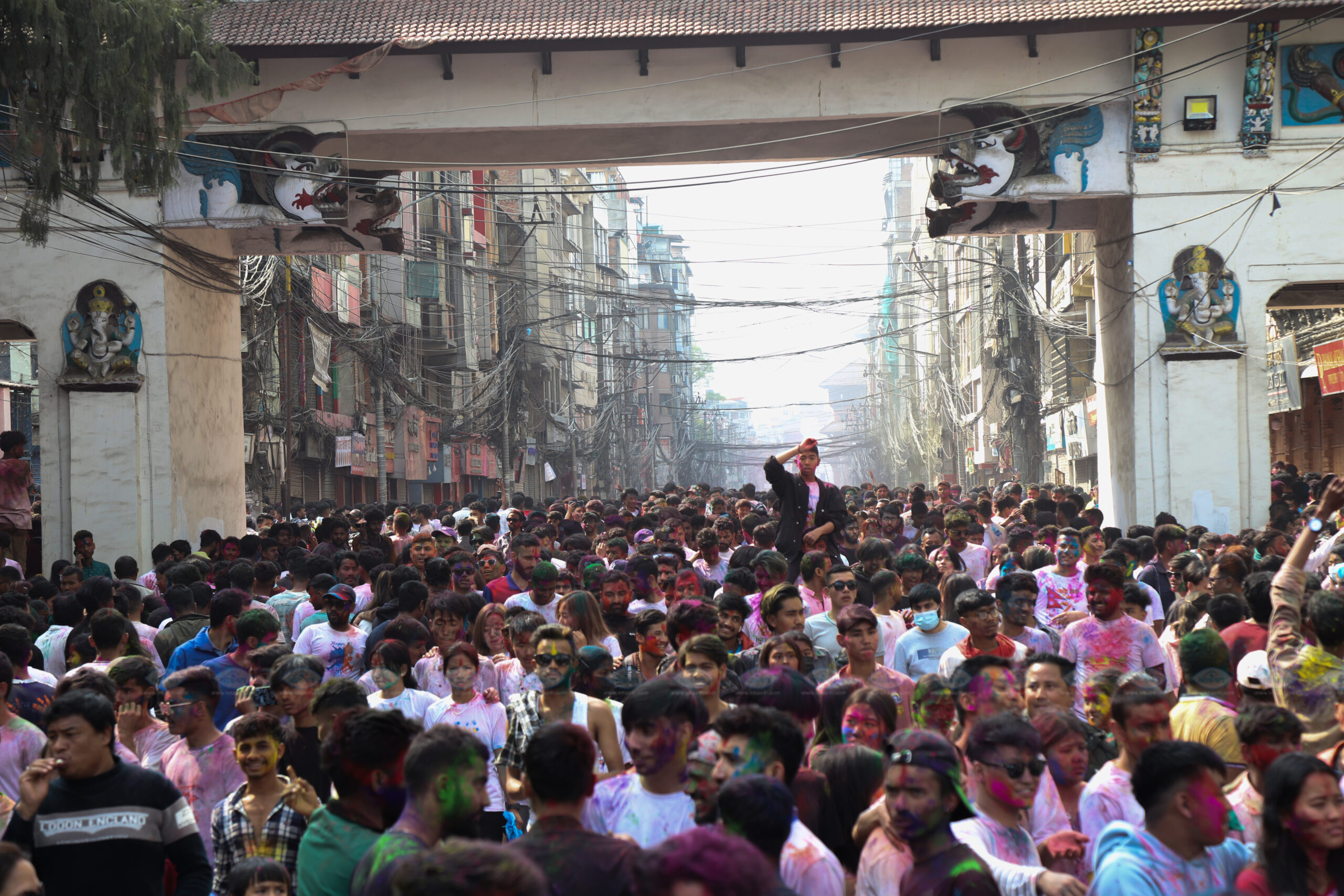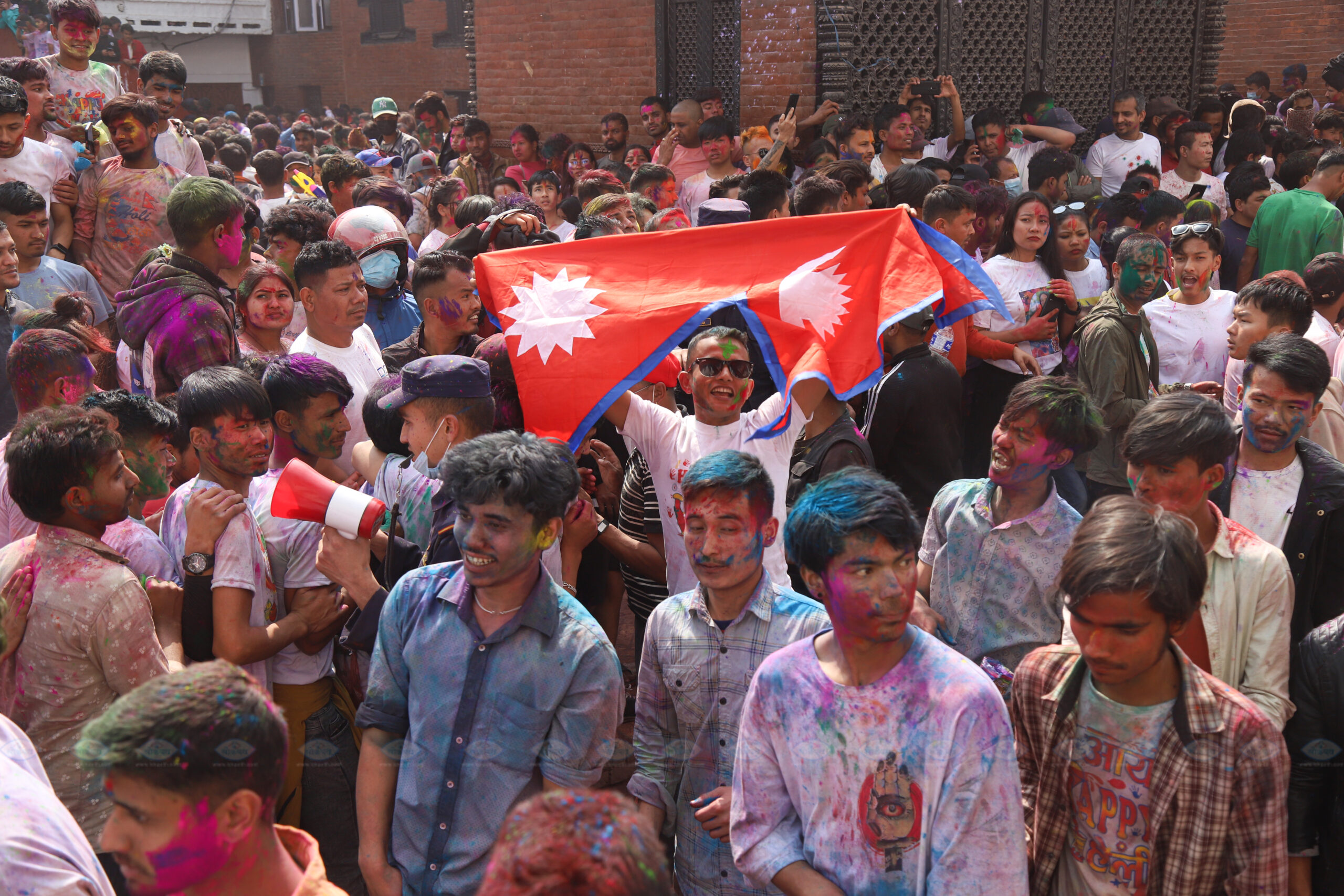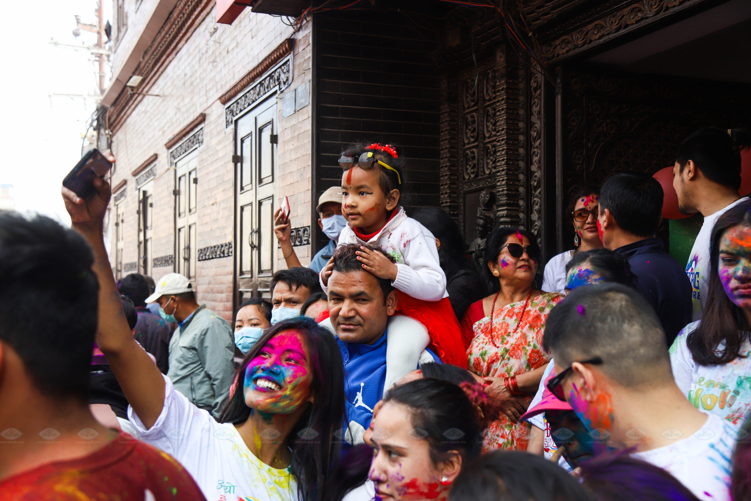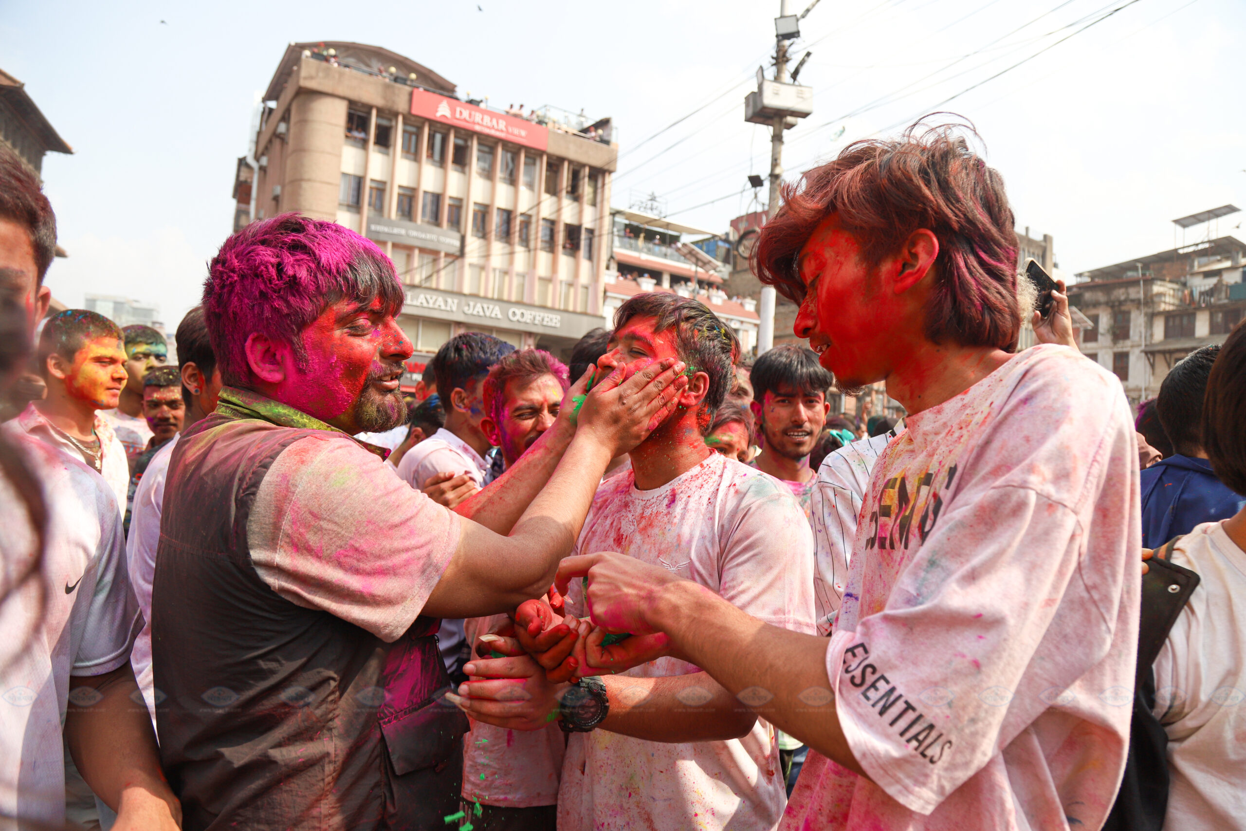सो क्रममा काठमाडौंको वसन्तपुरमा होली खेल्नेहरुको ठूलो भिड लागेको थियो । नेपाल घुम्न आएका पर्यटकहरु समेत होलीको रौनकमा रमाएका छन् ।