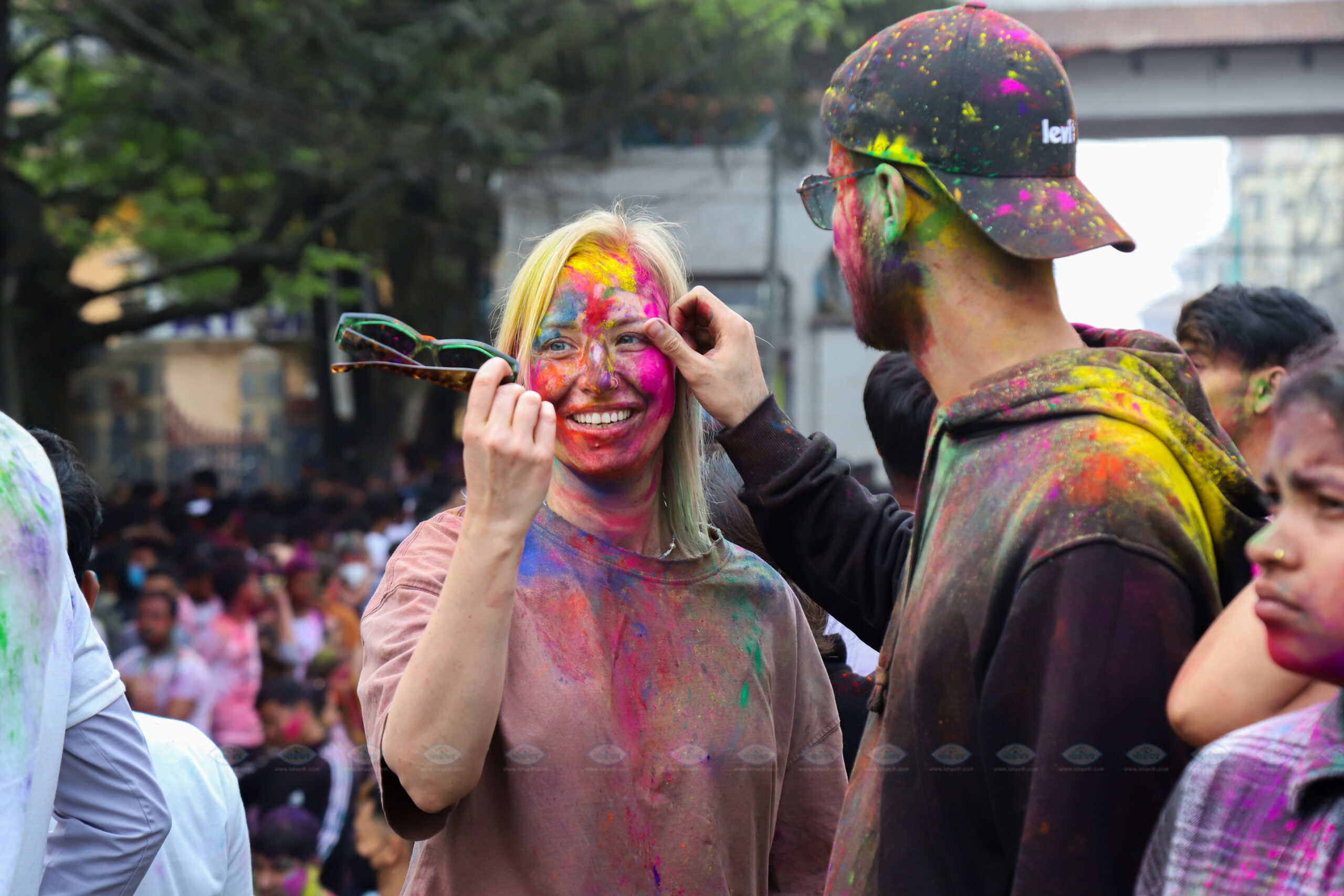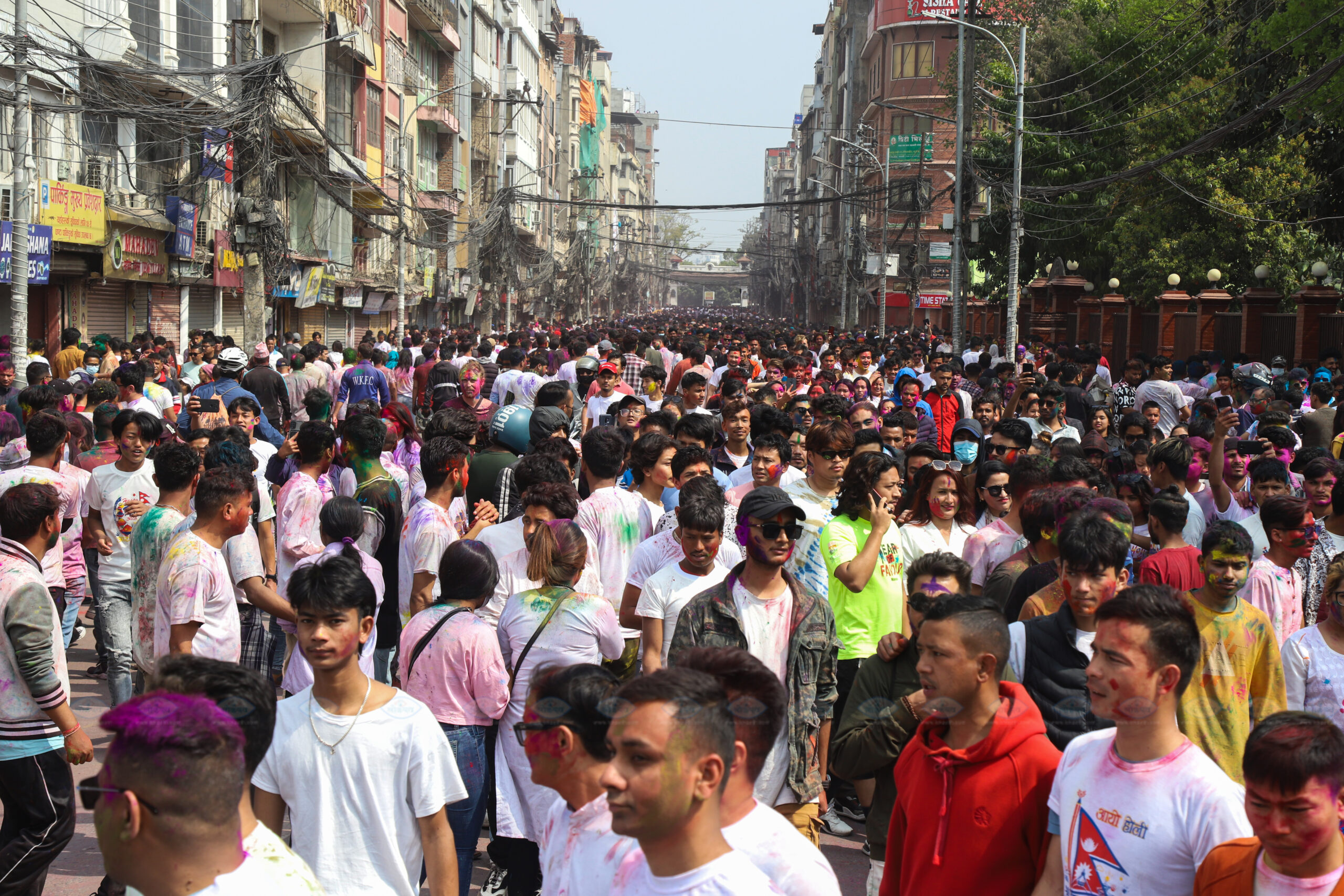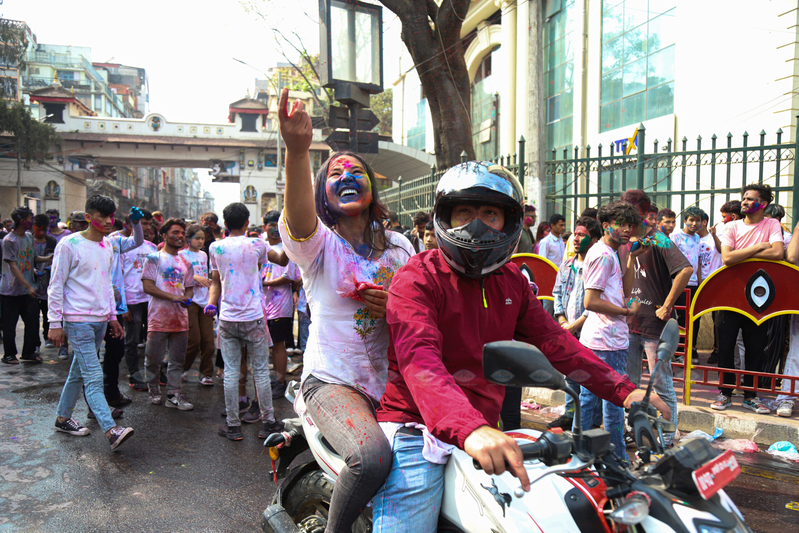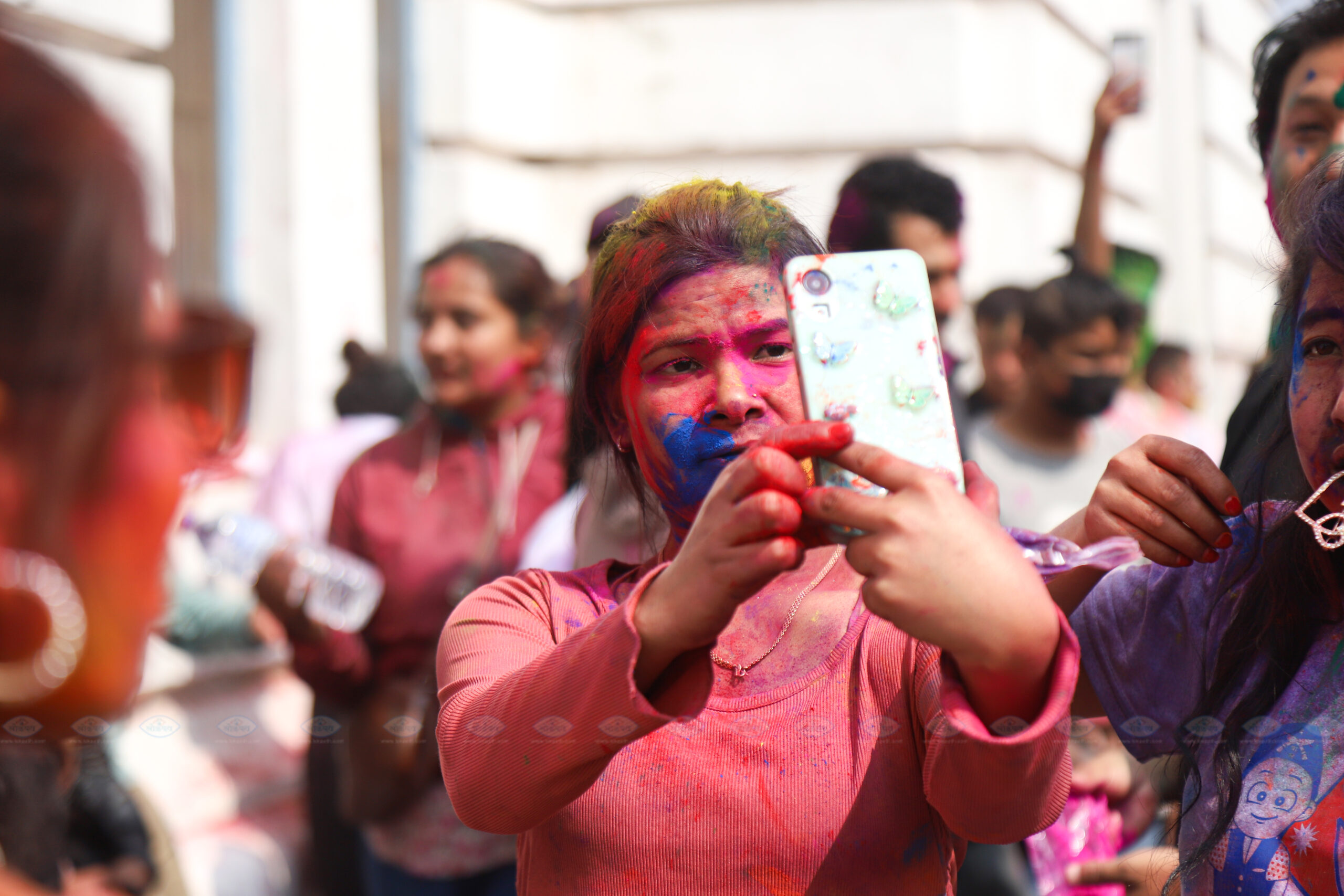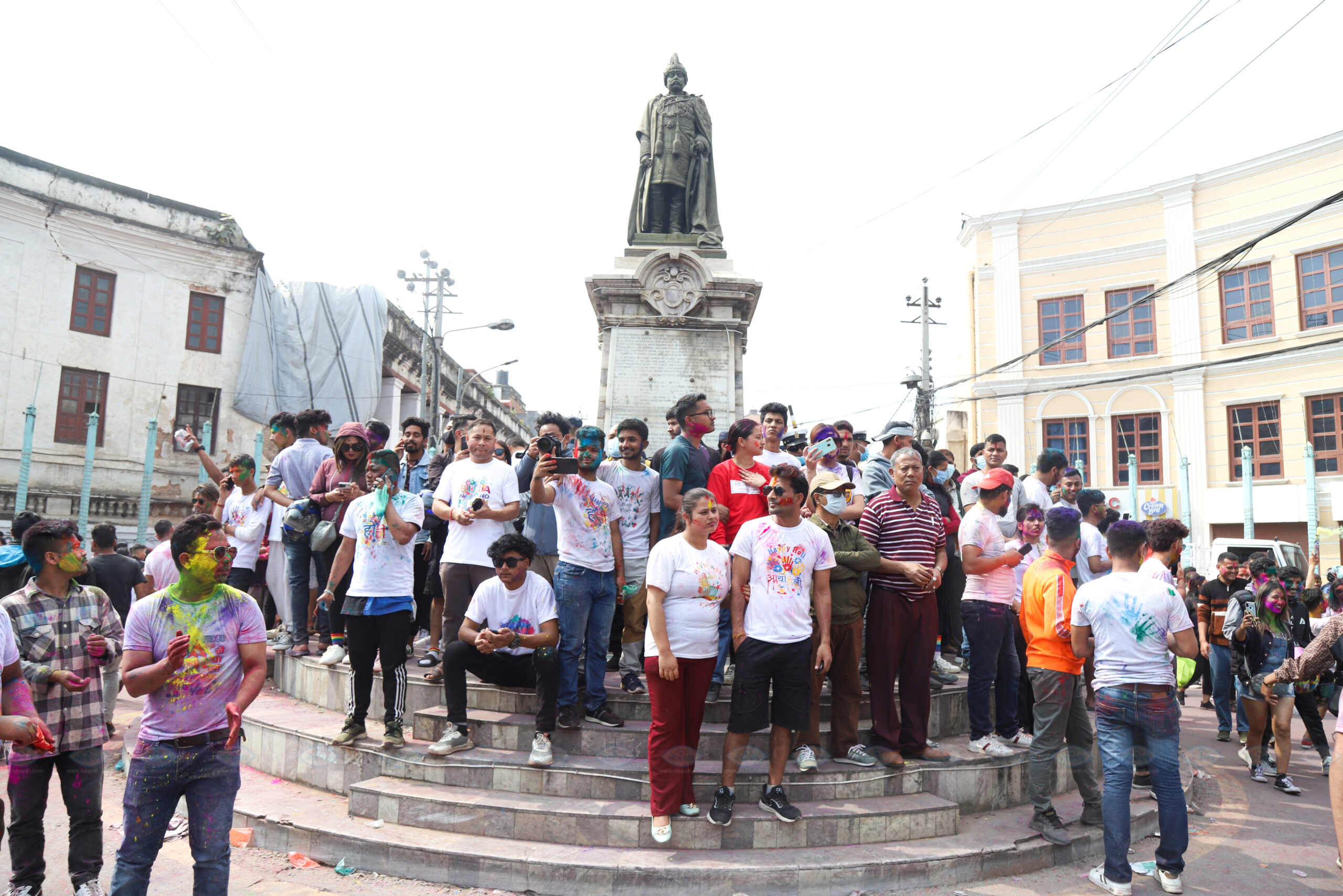 सो क्रममा काठमाडौंको वसन्तपुरमा होली खेल्नेहरुको ठूलो भिड लागेको थियो । नेपाल घुम्न आएका पर्यटकहरु समेत होलीको रौनकमा रमाएका छन् ।