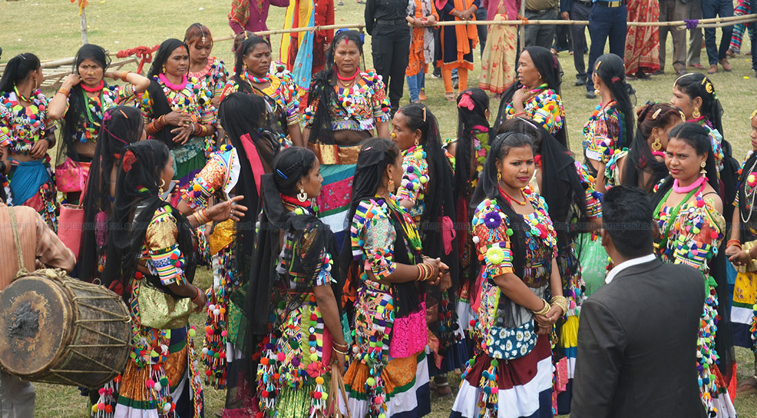 महिलाहरूले घगरिया, अङिया, फतुई (सिक्काको माला) र पुरुषले घगिया पहाना, तुल फेरा (परम्परागत पहिरन) लगाएर रातभरि होली खेल्ने प्रचलन छ । पछिल्लो समय डिस्को डिजेमा मात्रै सीमित हुने र होली खेल्ने समय पनि छोटिँदै गएकोप्रति पाका पुस्ताले चिन्ता व्यक्त गरेका छन् । सो समुदायका जानकारका अनुसार हिरण्यकश्यपले विष्णु भगवानका भक्त आफ्नो छोरा प्रल्हादलाई अग्निमा नजल्ने बरदान पाएकी आफ्नी बहिनी होलिकासँग आफ्नो काखमा राखेर जलाउने भनी आदेश दिएका थिए ।