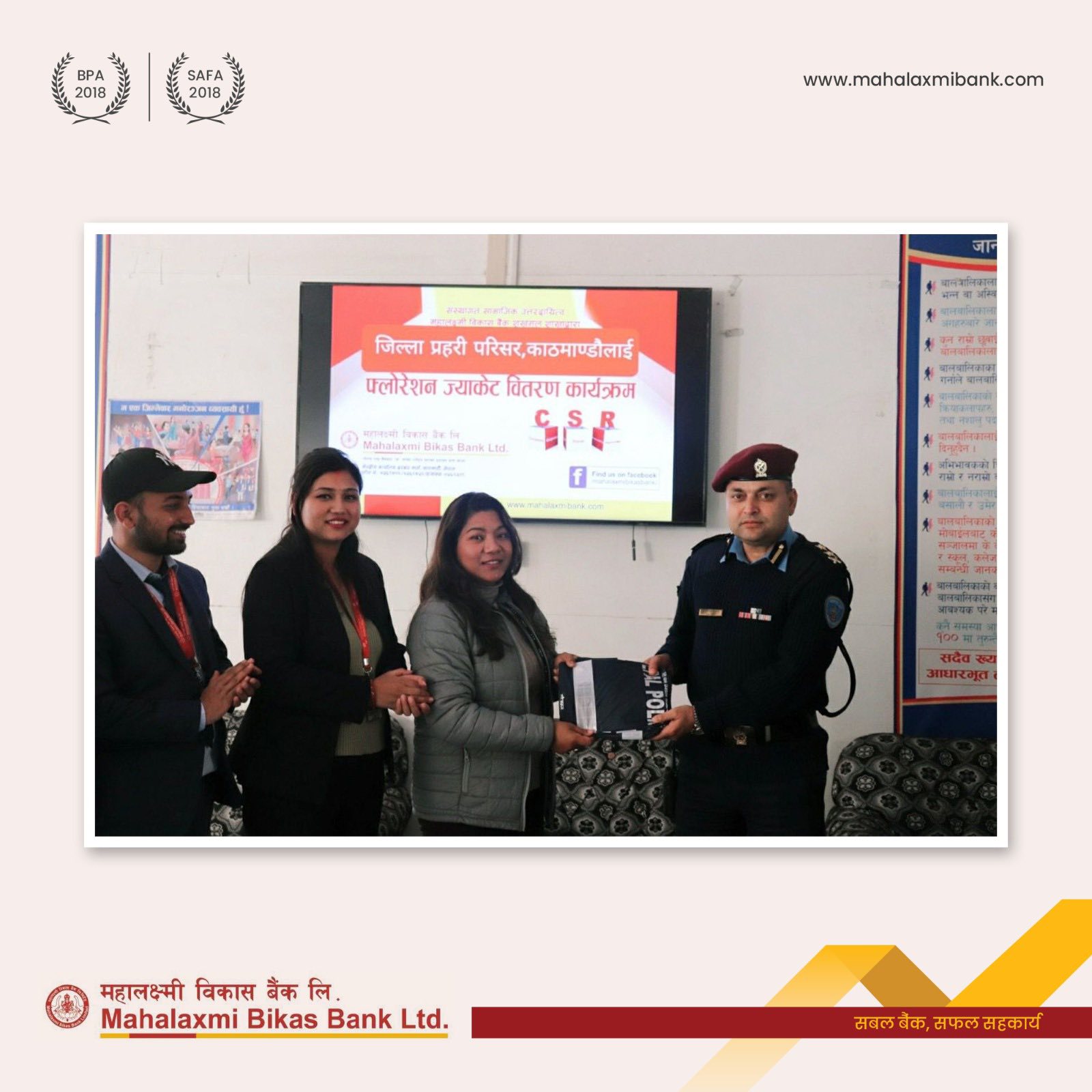 काठमाडौं । “सबल बैंक, सफल सहकार्य” को नारालाई आत्मसाथ गर्दै नेपाली जनताको घरदैलोमा विगत २८ वर्ष देखि अनवरत रुपले गुणस्तरिय वित्तीय सेवा प्रदान गर्दै आएको महालक्ष्मी विकास बैंक लिमिटेडद्वारा संस्थागत सामाजिक उत्तरदायित्व अन्तर्गत प्रहरी वृत्त मालीगाँउ र जिल्ला प्रहरी कार्यालय, टेकु, काठमाडौंलाई सहयोगका कार्यक्रमहरु सम्पन्न भएका छन् ।