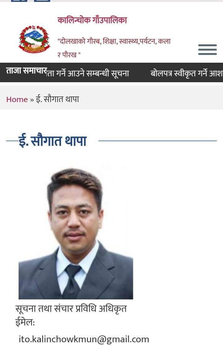 दोलखाको कालिन्चोक गाउँपालिकाका कार्यरत सूचना तथा संचार प्रविधि अधिकृत सौगात थापालार्इ दोलखा कांग्रेसले सिफारिस गरेको हो ।
