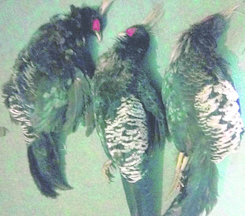 भए हाताहाती नभए उधारोमा सिकारीले कालिज, डाँफे, झालर, घोरललगायतको मासु घरघरमै पुर्याउने गरेको जय पृथ्वी नगरपालिका–११ सुइलका कल्लाने बोहराले बताए।नागरिक दैनिकमा खबर छापिएकाे छ ।