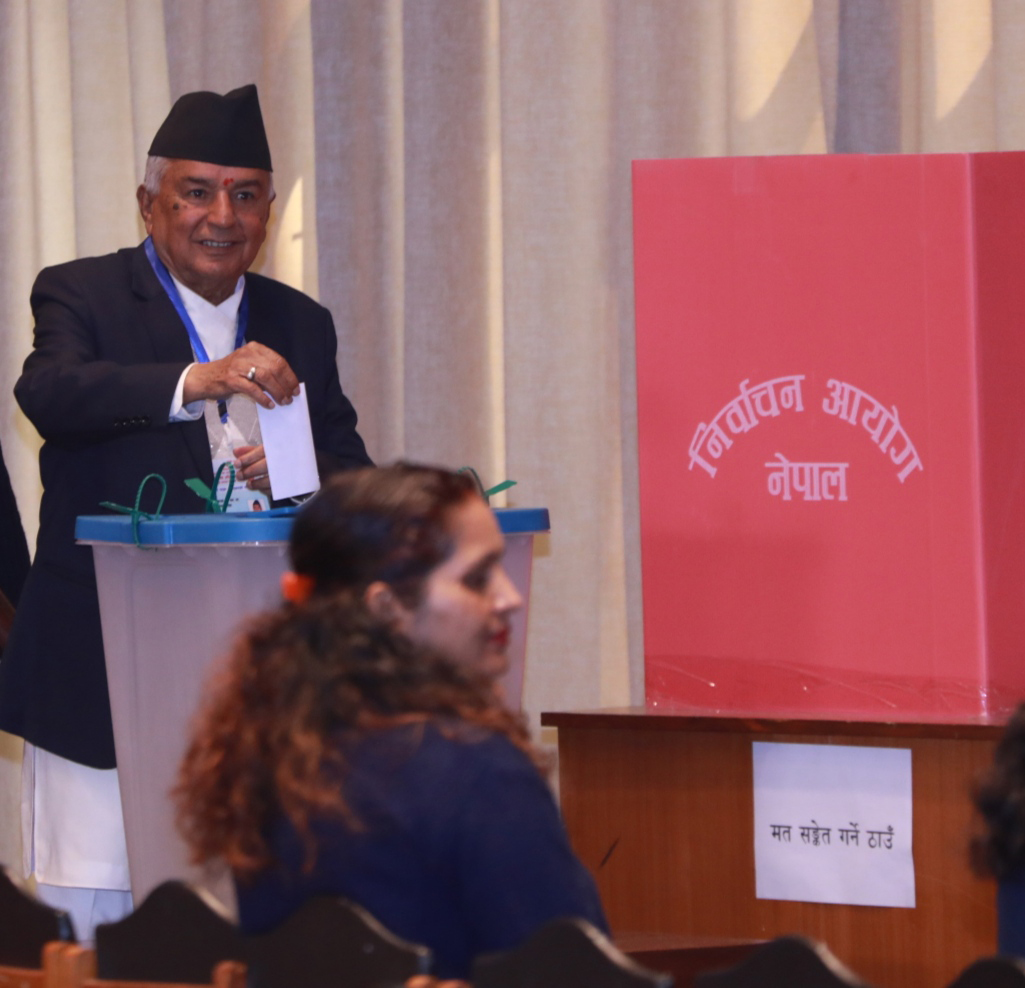 बिहान १० देखि शुरु भएको मतदानमा नेपाली कांग्रेसका उम्मेदवार रामचन्द्र पौडेलले पहिलो मतदान गरेका छन् । नेकपा एमालेबाट सुवासचन्द्र नेम्वाङ उम्मेदवार रहेका छन् ।