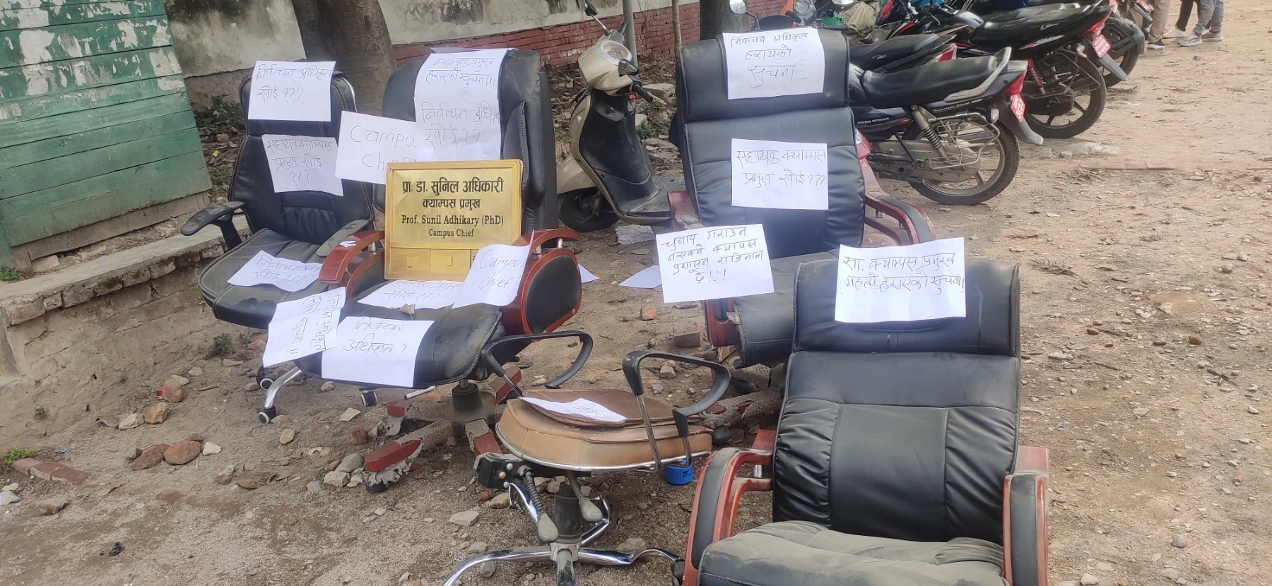 विद्यार्थीको एक समूहले क्याम्पस प्रमुख, सहायक क्याम्पस प्रमुख र निर्वाचन अधिकृतको कार्यकक्षमा तोडफोड गरेका हुन् । तोडफोडबाट टेबल तथा कुर्सीहरुमा क्षति पुगेको छ ।