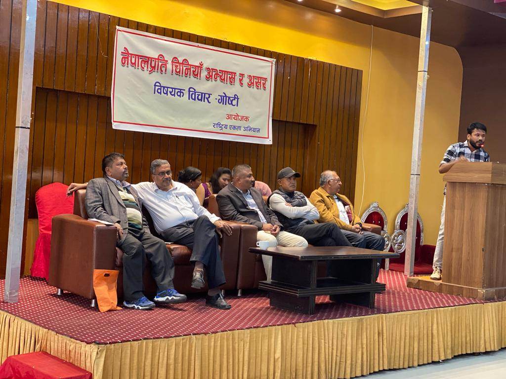 आइतबार काठमाडौंमा राष्ट्रिय एकता अभियानले आयोजना ‘नेपालप्रति चिनियाँ अभ्यास र असर’ विषयक विचार–गोष्ठीमा बोल्दै उनले चीनले पछिल्लो समय नेपालमाथि विभिन्न कोणबाट आँखा लगाइरहेको टिप्पणी गरे ।