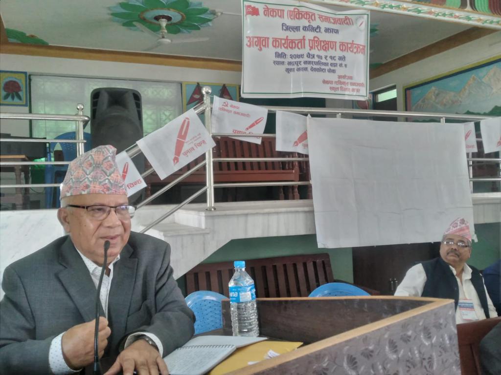 शुक्रबार नेकपा एकीकृत समाजवादी झापाले आयोजना गरेको २ दिने अगुवा कार्यकर्ता प्रशिक्षण कार्यक्रममा बोल्दै अध्यक्ष नेपालले नेपाली राजनीतिको कोर्ष परिवर्तनमा आफूहरूको भूमिका उल्लेख्य रहेको बताए ।