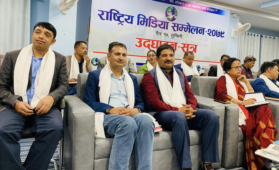 महासङ्घ केन्द्रीय समितिको चैत्र १६ गते पश्चिम नवलपरासीको रामग्राममा सम्पन्न आठौँ बैठक र शुक्रबार रुपन्देहीको लुम्बिनीमा सम्पन्न ‘राष्ट्रिय मिडिया सम्मेलनपश्चात आज जारी ९ बुँदे घोषणापत्रमा संविधानअनुसार बन्नुपर्ने सञ्चार सम्बद्ध निकायको गठन तथा पूर्णताका लागि पनि सरकारको ध्यानाकर्षण गराइएको छ ।