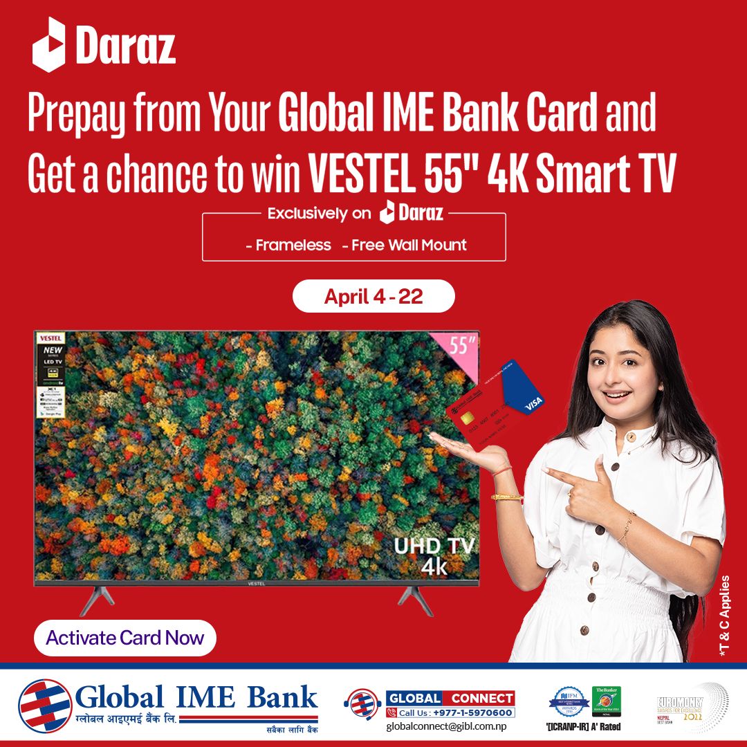 काठमाडौं । ग्लोबल आइएमई बैंक लिमिटेडले आफ्ना ग्राहकहरुका लागि दराजबाट सामान किन्दा ५५ इन्च वेस्तेल लिड स्मार्ट टिभी जित्न सक्ने योजना सार्वजनिक गरेको छ ।