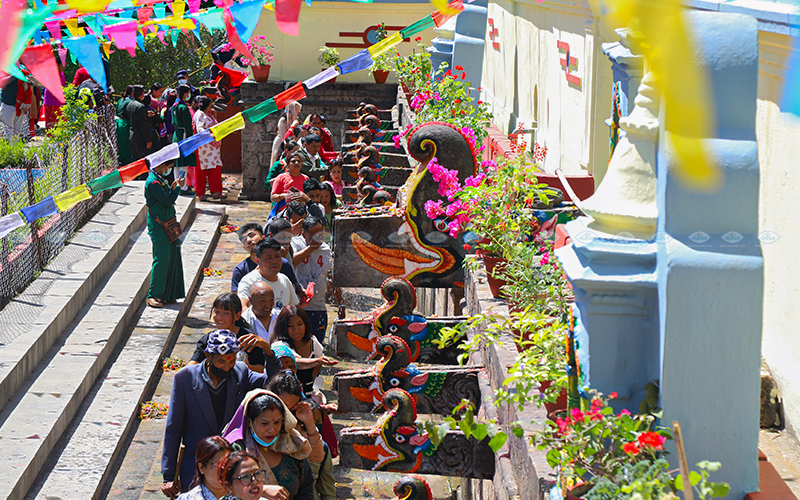 चैत शुक्लपूर्णिमाको अघिल्लो दिन बौद्ध धर्मावलम्बीहरुले बौद्ध गुम्बामा पूजापाठ गर्ने र पूर्णिमाको दिन बालाजु बाइसधारामा स्नान गर्ने गर्दछन् । स्नानपछि स्वयम्भू महाचैत्यमा पुगेर पूजापाठ पनि गरिन्छ ।