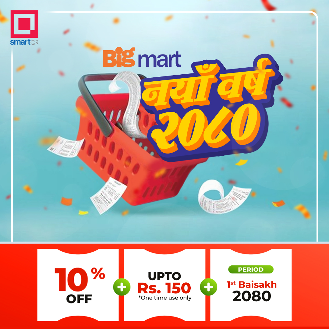 स्मार्ट क्युआरमा आवद्ध विभिन्न बैंक तथा वित्तिय संस्थाका ग्राहकहरुले बिग मार्टको सम्पूर्ण शाखाहरुमा क्युआर स्क्यान गरि भुक्तानी छुट प्राप्त गर्न सक्ने छन् ।