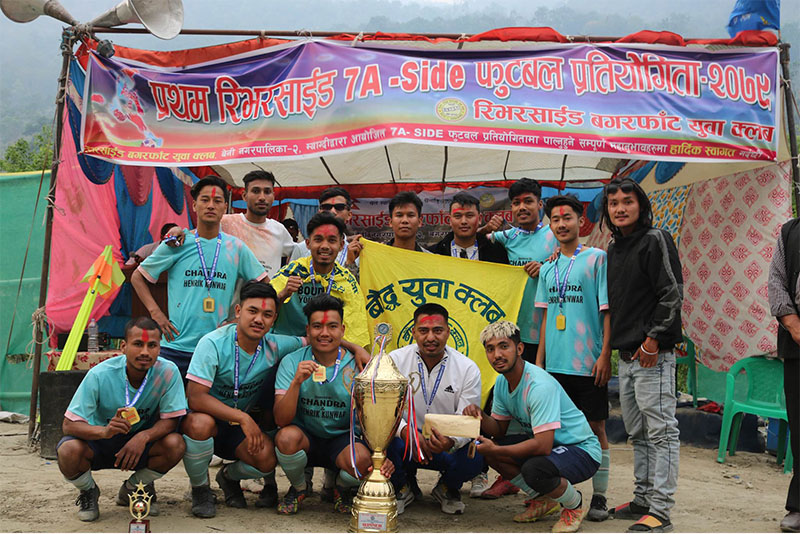 नयाँ वर्ष २०८० को अवसर पारेर रिभरसाइड बगरफाँट युवा क्लबले आयोजना गरेको उक्त प्रतियोगिताको शुक्रबार साँझ भएको फाइनल खेलमा रिभरसाइड युवा क्लबलाई चारका विरुद्ध तीन गोलले पराजित गर्दै वौद्ध युवा क्लब विजेता बन्न सफल भएको हो ।