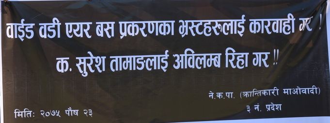 पुस २२ गते पार्टीका काठमाडौं जिल्ला कमिटी सदस्य सुरेश तामाङलाई प्रहरीले पक्राउ गरेको थियो । र्यालीमा सहभागिहरुले ‘वाइडबडी प्रकरणमा मुछिएकाहरुलाई कारवाही गर्न तथा आफ्ना नेताको रिहाइको माग गरेका थिए ।