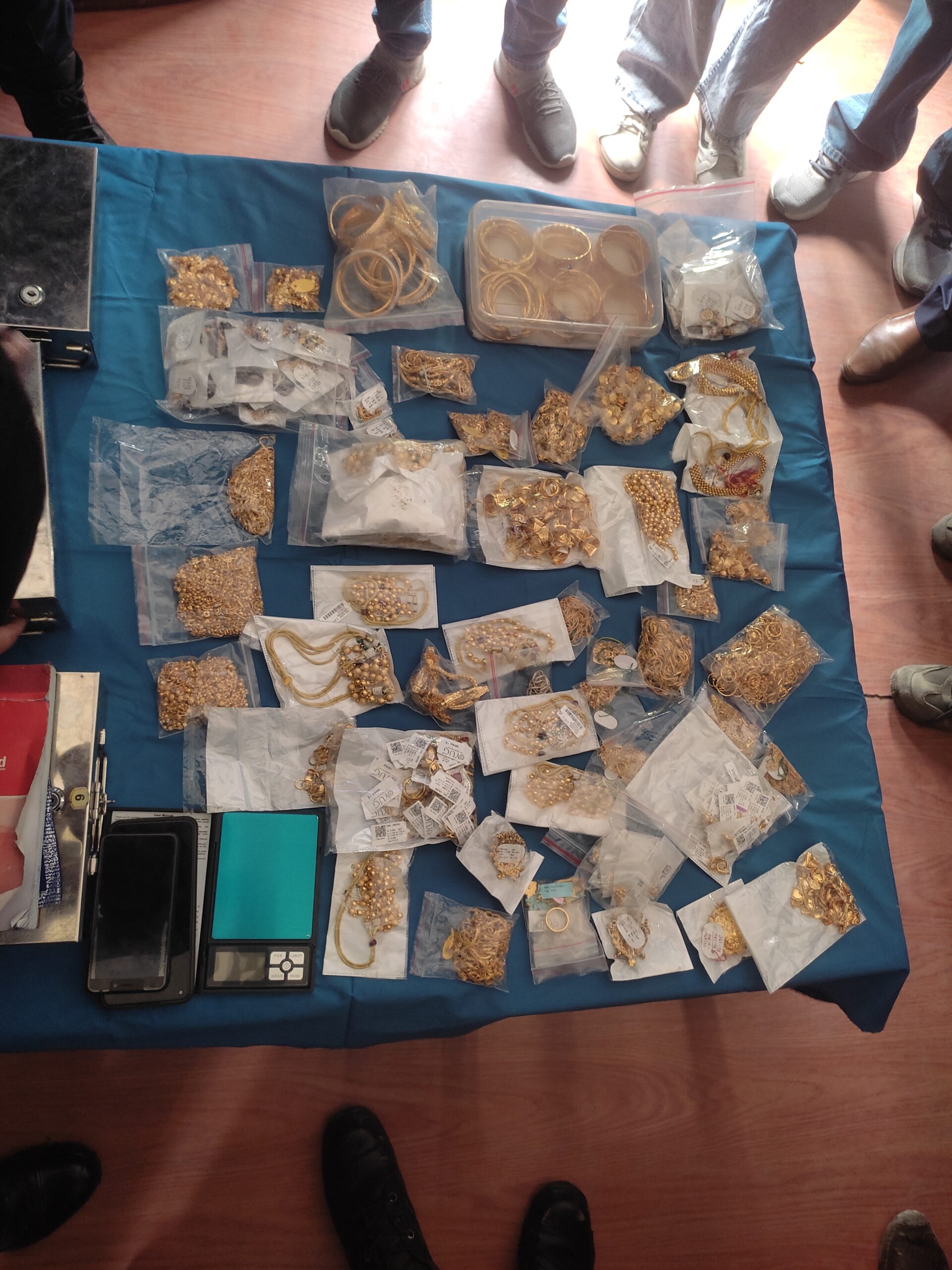 पक्राउ परेका व्यक्तिका साथबाट सुनका चुरा, ब्रासलेट, मङ्गलसुत्र, बाला, ढुङ्ग्री, औँठीलगायतका सुनका गहना प्रहरीले गएराति बरामद गरेको हो ।