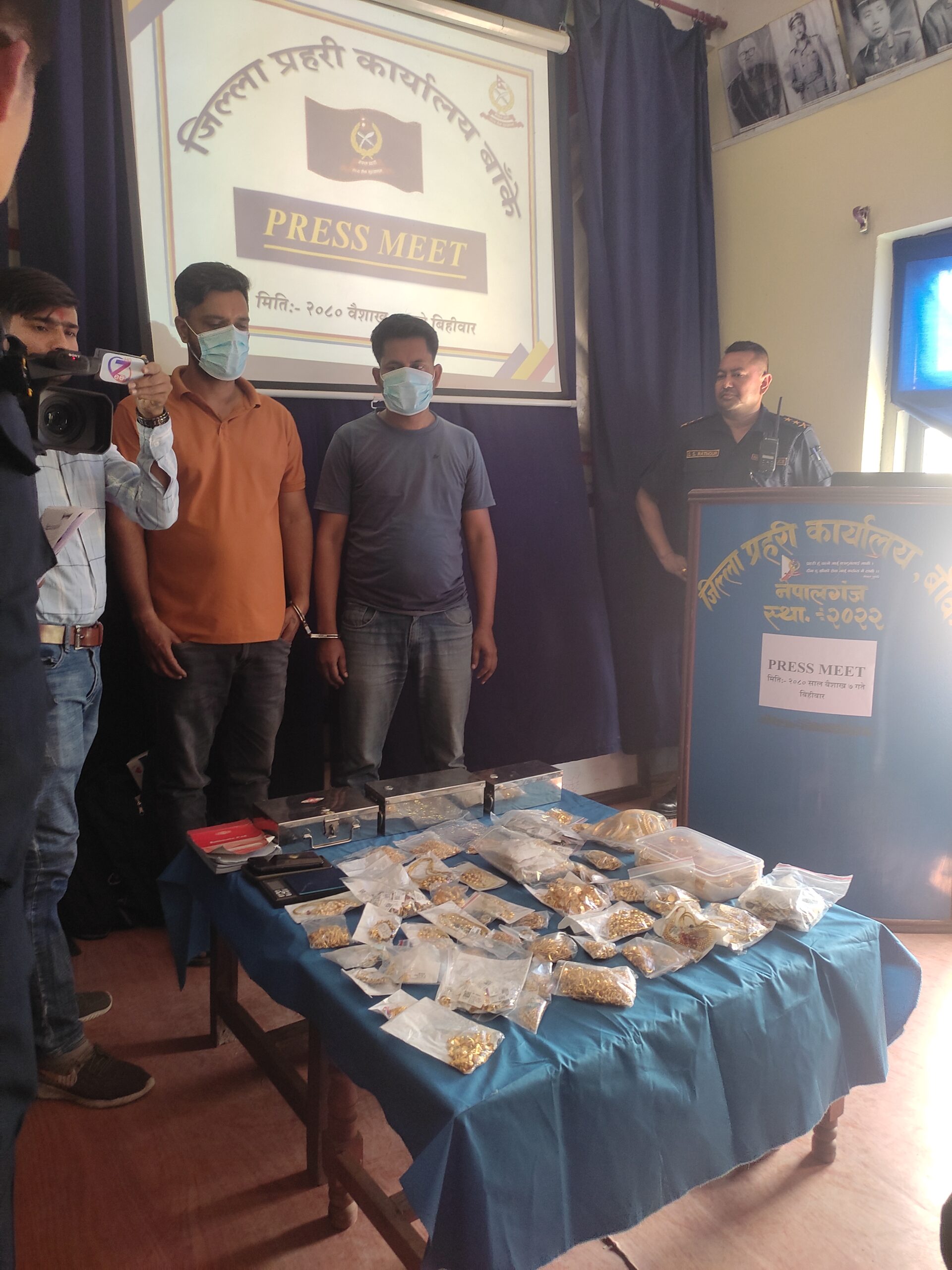 जिल्ला प्रहरी कार्यालय बाँकेका प्रमुख एसपी सन्ताेषसिंह राठौरका अनुसार नेपालगञ्जको न्यूरोडस्थित एक होटलबाट ४ दशमलव नौ सय २७ किलोग्राम सुनका विभिन्न गहनासहित उनीहरुलाई पक्राउ गरिएको हो ।