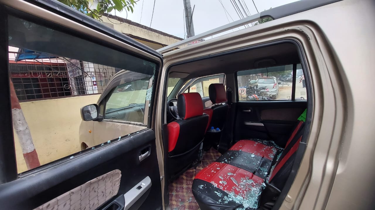 रोकेर राखिएको ठाउँमा उक्त गाडीको सिसा फुटाइएको छ ।