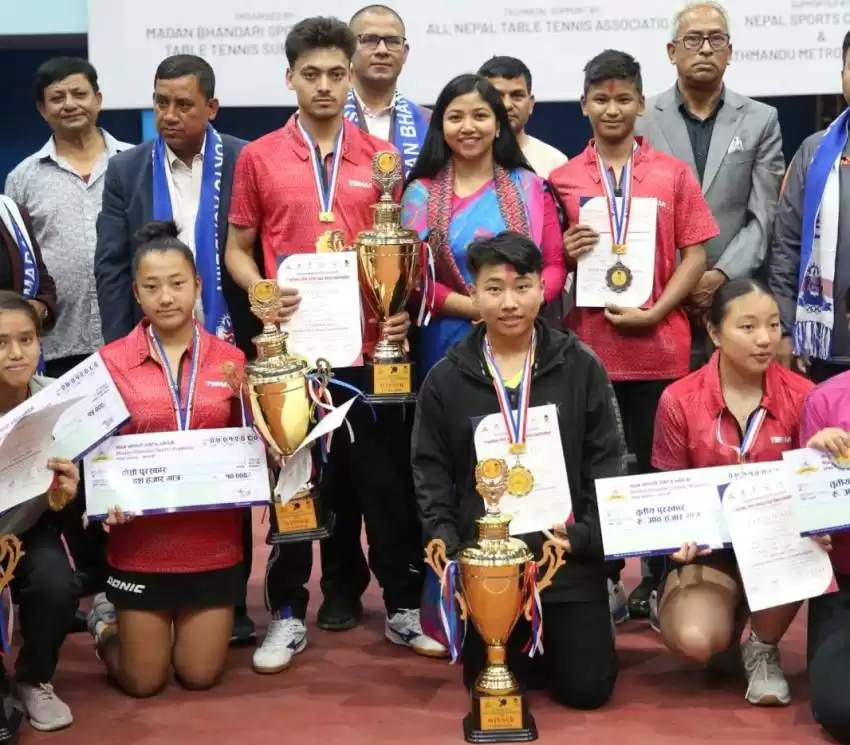 यु–१९ एकल विधाको छात्रमा सुजन तथा छात्रामा वियङ्काले स्वर्ण जितेका हुन् ।लैनचौरस्थित राष्ट्रिय टेबलटेनिस प्रशिक्षण केन्द्रमा भएको प्रतियोगिताको छात्रमा ललितपुरका विशाल गोले दोश्रो तथा मोरङका विश्व बानियाँ र स्ट्याग च्याम्पियन्स टेबलटेनिस एकेडेमीका गनञ्जय दाहाल तेस्रो भए । छात्रामा एभीएमकी इभाना थापा तथा मोर्डन कलेजकी दिया देउला र सुनसरीकी अन्जलीकुमारी ठाकुर तेस्रो बने ।