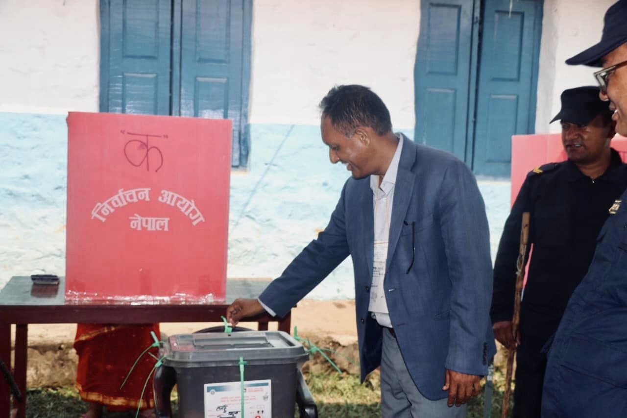 जारी मतदानमा गठबन्धनबाट उम्मेदवार बनेका नेपाली कांग्रेसका गोविन्द्र भट्टराईले मतदान गरेका छन् ।