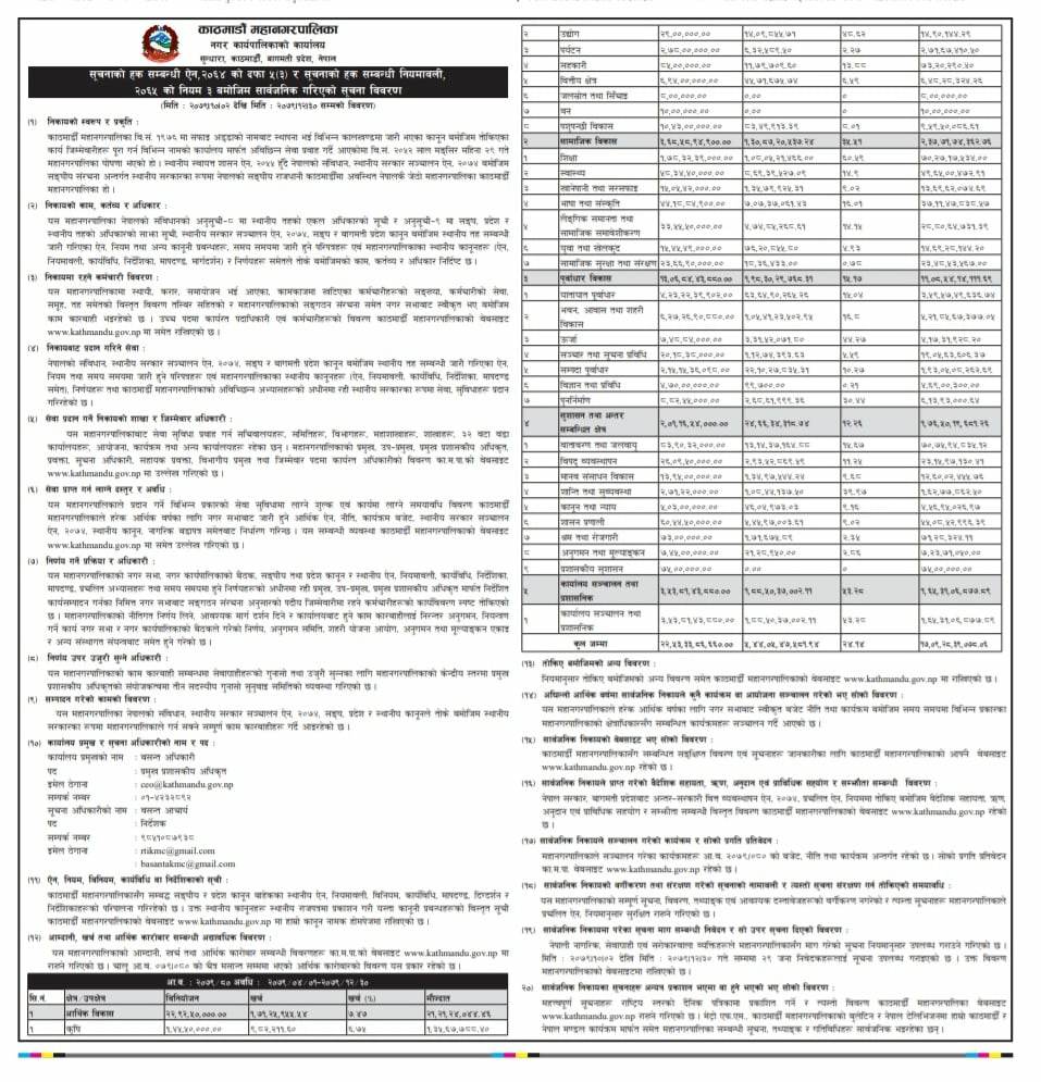 काठमाडौं महानगरद्वारा माघ २ गतेदेखि चैत ३० गतेसम्मको विवरण सार्वजनिक