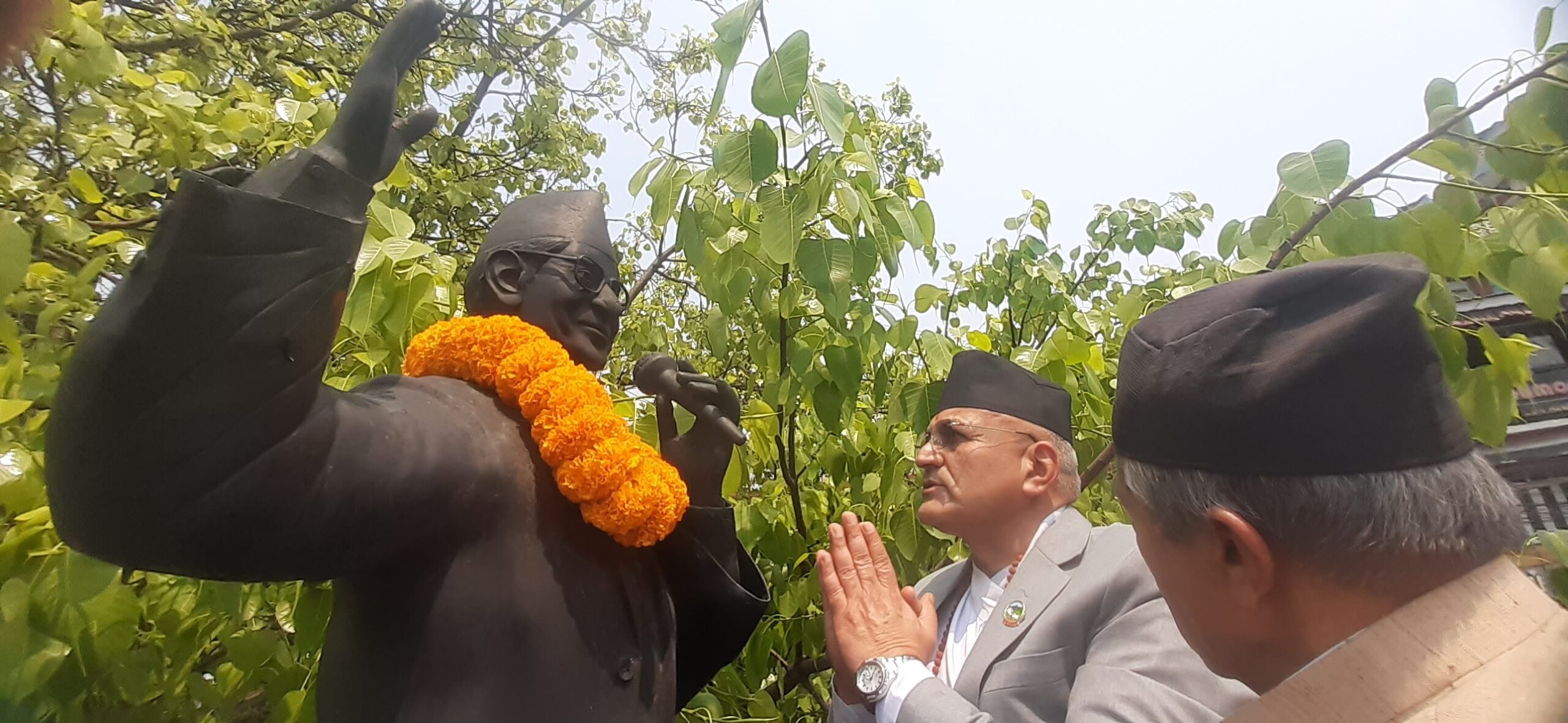 नवनियुक्त मुख्यमन्त्री पाण्डेद्वारा वीपी कोइरालाको सालिकमा माल्यार्पण