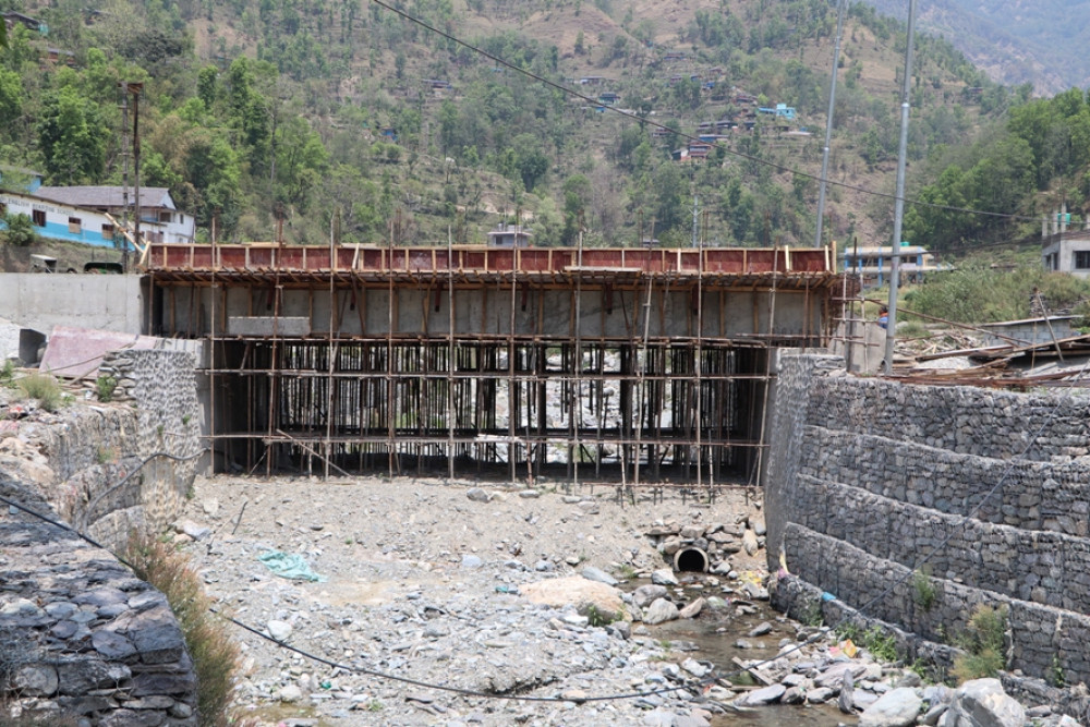 गण्डकी प्रदेश सरकारले आर्थिक वर्ष २०७७/७८ मा विनियोजन गरेको बजेटले यहाँ पुल निर्माण हुन थालेको हो । विसं २०७८ वैशाखमा पुल निर्माणका लागि सम्झौता भएको थियो । विसं २०८९ वैशाखमा पुल निर्माण सम्पन्न गर्ने भनिए पनि अहिलेसम्म सम्पन्न भएको छैन । निर्माण कम्पनीले समयमै पुल सम्पन्न नगरेपछि विसं २०८९ पुससम्म म्याद थप गरिएको थियो । पुसमा पनि पुल बनेन । निर्माण कम्पनीले असार मसान्तसम्म सक्नेगरी धमाधम काम गरिरहेको गलकोट नगरपालिकाका सबइञ्जिनियर चन्द्र पुनले जानकारी दिए ।
