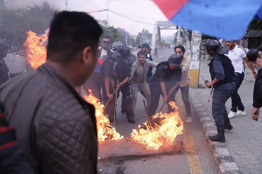 काठमाडौं । नेकपा एमालेको भ्रातृ संगठन राष्ट्रिय युवा संघ, नेपालले प्रधानमन्त्री पुष्पकमल दाहालको पुत्ला दहन गरेको छ ।