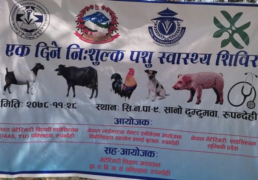 भेटेरेनरी अस्पताल तथा पशुसेवा विज्ञ केन्द्र गोरखाको प्राविधिक सहयोग र गाउँपालिका पशु शाखा तथा वडा कार्यालयको आर्थिक सहयोगमा वडा नं ४ रन्चोकमा शिविरमा आयोजना गरिएको पशुसेवा विज्ञ केन्द्र गोरखाका अधिकृत तथा सूचना अधिकारी डा लालमणि अर्यालले जानकारी दिए ।