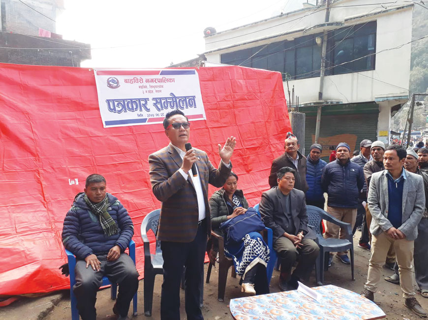 सिन्धुपाल्चोक । नगरसभा गरेर नगरपालिकाभित्र गर्नुपर्ने विकास निर्माणलगायतका अन्य काममा निर्णय लिनुपर्नेमा बाह्रबिसे नगरपालिकाका बहुमत सदस्यले नगरसभा बहिष्कार गरेपछि काम गर्न समस्या भएको भन्दै नगर प्रमुख निमफुञ्जो शेर्पाले सडकमै पत्रकार सम्मेलन गरेका छन् । बहुमत सदस्यले पटकपटक नगरसभा बहिष्कार गरेपछि काम गर्न समस्या भएको भन्दै नगर प्रमुख शेर्पाले पत्रकार सम्मेलन गरेका हुन् ।