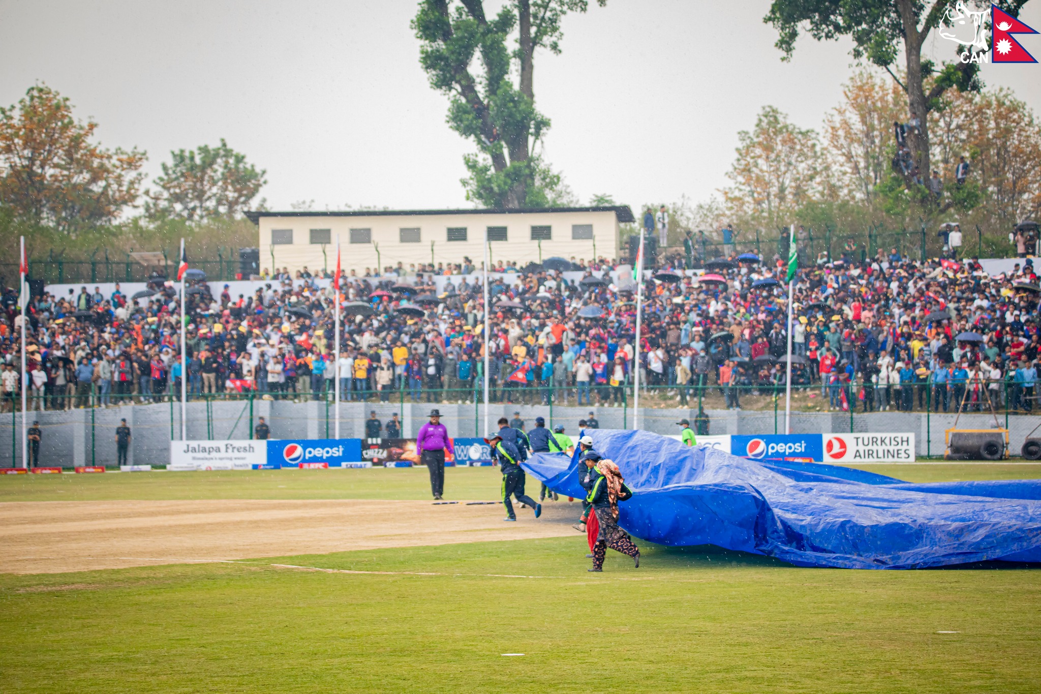 काठमाडौं । काठमाडौंमा जारी एसीसी प्रियिर कपको फाइनल खेल राकिएको छ । कीर्तिपुर मैदानमा वर्षा बाधक बनेसँगै नेपाल र यूएईबीचको खेल रोकिएको हो ।