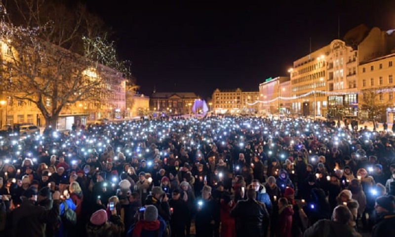 मेयर पावेल अडमोविजको हत्यापछि देशभरी हिंसाका विरुद्धमा प्रदर्शन गरिएको छ ।