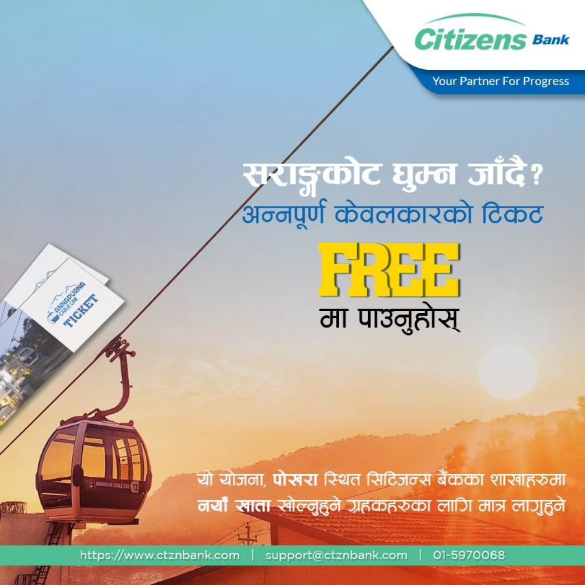 सो समझदारीपत्रमा हस्ताक्षर पश्चात् सिटिजन्स बैंकका कार्डबाहकहरुले अन्नपुर्ण केवल कारमा २५ प्रतिशतसम्मको आकर्षक छुट पाउनेछन् । साथै पोखरा स्थित सिटिजन्स बैंकका शाखाहरूमा नयाँ खाता खोल्नुहुने ग्राहकहरूका लागि अन्नपुर्ण केवल कारको टिकट निशुल्क उपलब्ध हुने छ ।