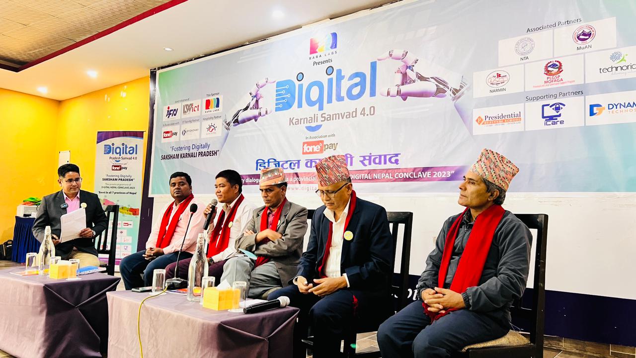 सुर्खेत । कर्णाली प्रदेशको राजधानी सुर्खेतमा डिजिटल संवाद आयोजना भएको छ । आइसिटी फाउन्डेसन नेपालको आयोजनामा बुधबार सुर्खेतमा रारा ल्याब्स डिजिटल कर्णाली संवाद इन एशोशिएसन विथ फोनपे सम्पन्न भएको हो ।