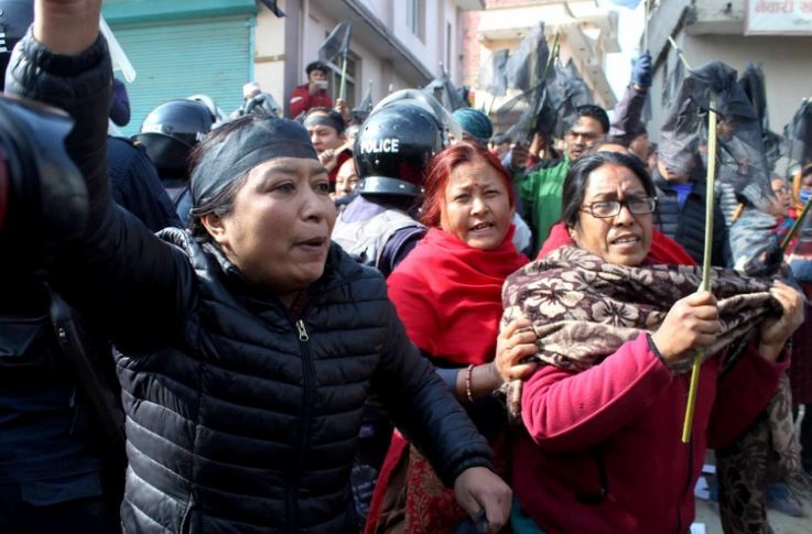 सुख्खा बन्दरगाह निर्माणको विरोधमा चोभारका स्थानीयहरुको प्रदर्शन