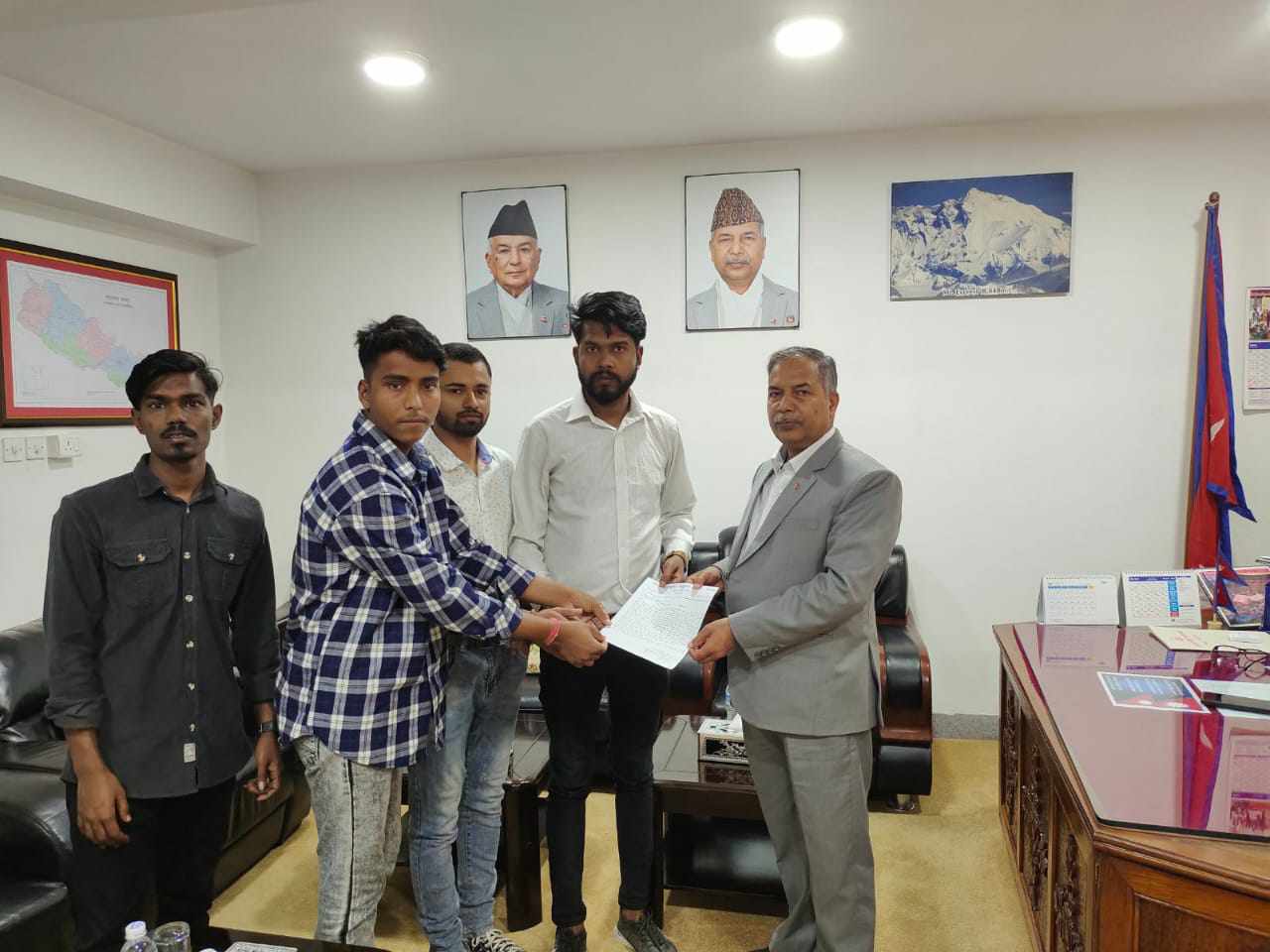 समितिका तर्फबाट अध्यक्ष ईन्द्रजित साफीसहितको टोलीले उपराष्ट्रपति रामसहायप्रसाद यादवलाई ज्ञापनपत्र बुझाएको छ ।