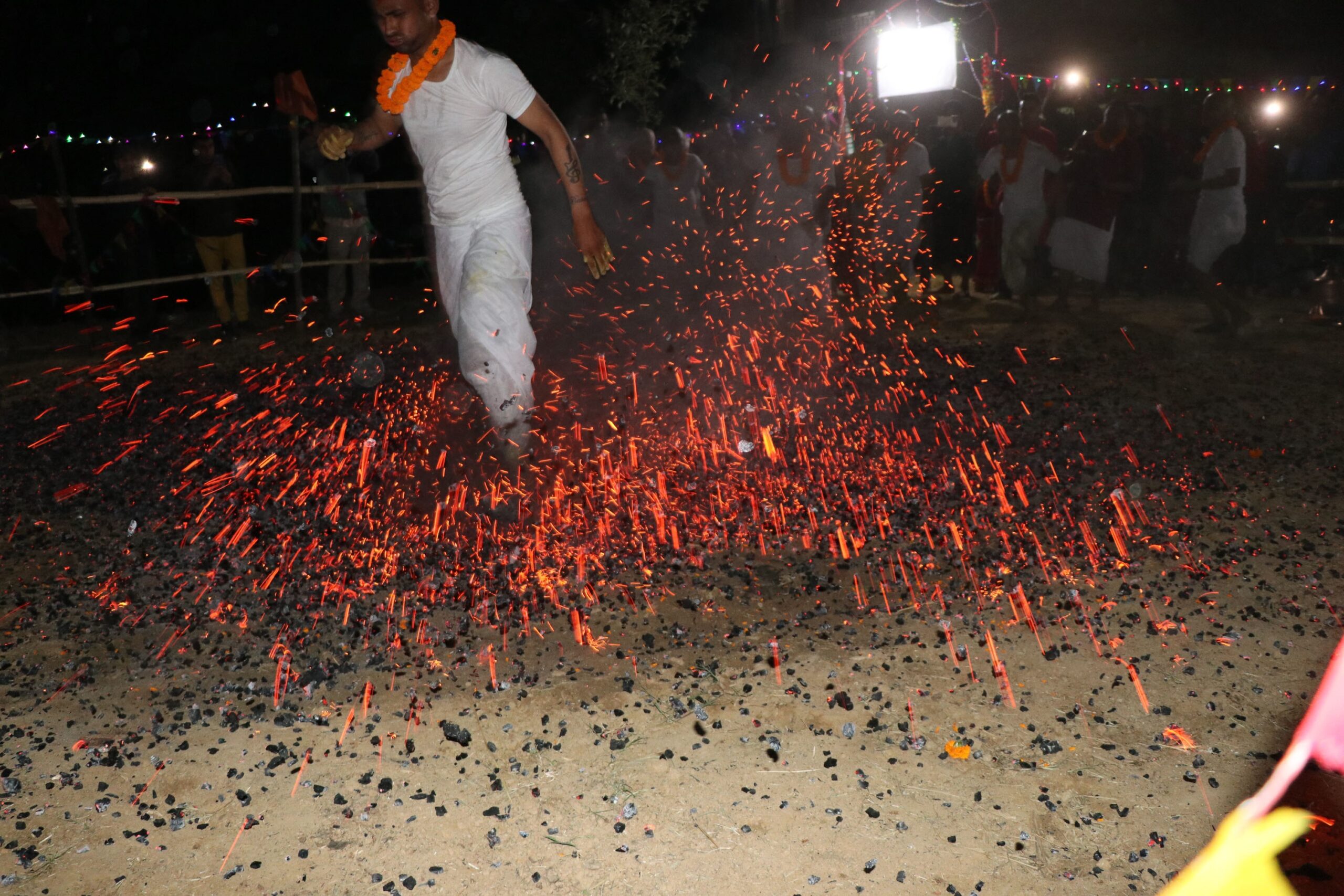 दुई घन्टाभन्दा बढी समय बलेको दाउरा सबै आगोका भुङ्ग्रोमा परिणत भयो । मध्यराति करिब ११ बजे यो बस्तीसँगै वरिपरिबाट भेला भएका मानिस बारीको डिल र वरिपरि बसेर निकै कौतुहलताका साथ ‘अग्निकुण्ड’तर्फ हेर्दै अब के हुन्छ, आगोको सबै भुङ्ग्रोे माथि उफ्रेर सबै आगोको गोल निभाउँछन् कि निभाउँदैनन्  भनेर हेर्दै थिए ।