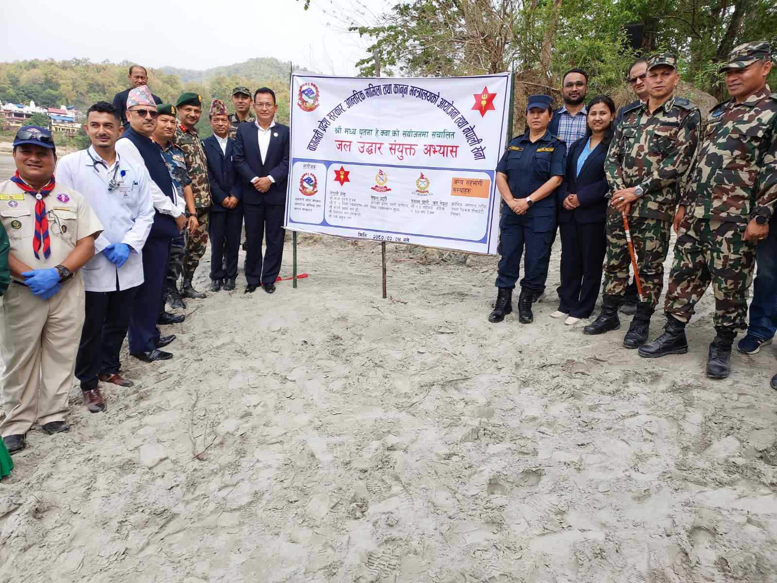 नेपाली सेना, नेपाल प्रहरी, सशस्त्र प्रहरी बल, स्काउट र रेडक्रसकले जल उद्दार संयुक्त अभ्यासका नक्कल प्रदर्शनी गर्नुका साथै बिपदसँग सम्वन्धित सामग्री र उपकरणको जानकारी गराएका थिए ।