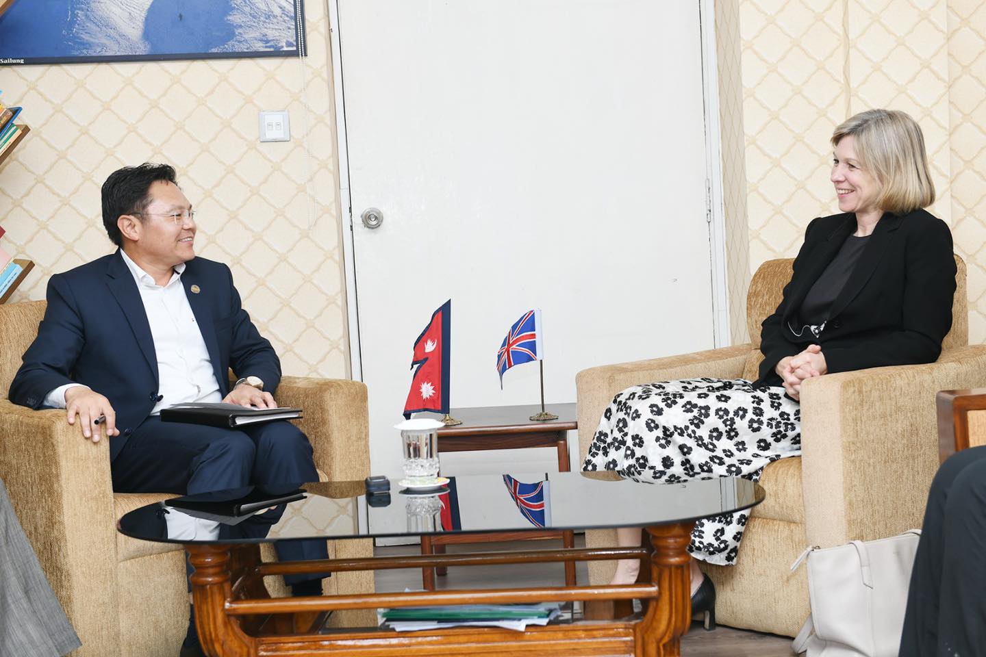 काठमाडौं । संस्कृती पर्यटन तथा नागरिक उड्डयनमन्त्री सुदन किराती र नेपालका लागि बेलायती राजदूत निकोला पोलिटबीच भेटघाट भएको छ ।