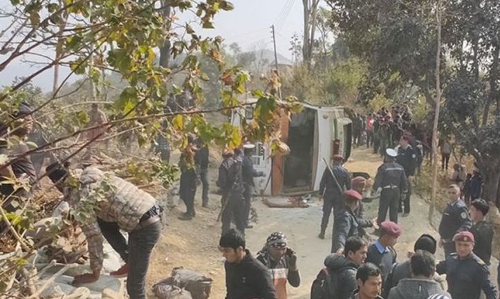 ओरालोमा गुडिरहेको बस अकस्मात कच्ची सानो सडकमा चढ्ने बित्तिकै पल्टिएको थियो ।