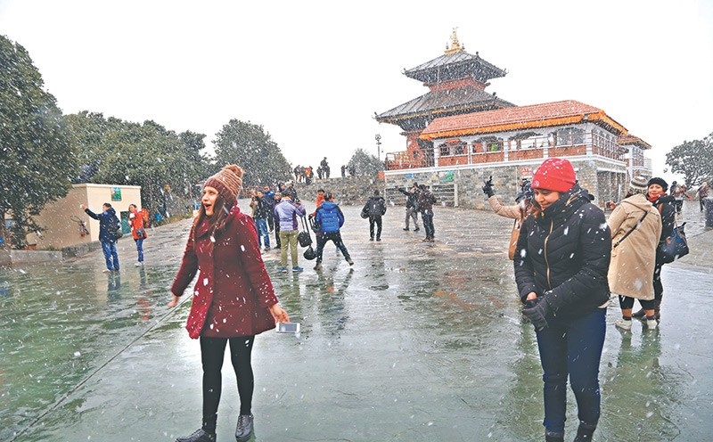 नियमितजसो मन्दिरमा पूजाआजा गर्ने, क्षितिजमा देखिएका हिमशृङ्खला र उपत्यकालगायत सुन्दर दृश्यलाई केन्द्रित गरेर तस्वीरमा कैद गर्ने तथा सेल्फीमा रमाउने पर्यटकका लागि बुधवार मौसममा आएको परिवर्ततसँगै झण्डै तीन इन्चजति बाक्लो सेताम्मे हिउँले भुलायो । दुई साता अघिमात्रै परेको हिउँको मजा भुल्न नपाउँदै उपत्यकावासीले यस वर्ष दोस्रो पटक हिउँसँग खेलेर औधी मनोरञ्जन लिए ।