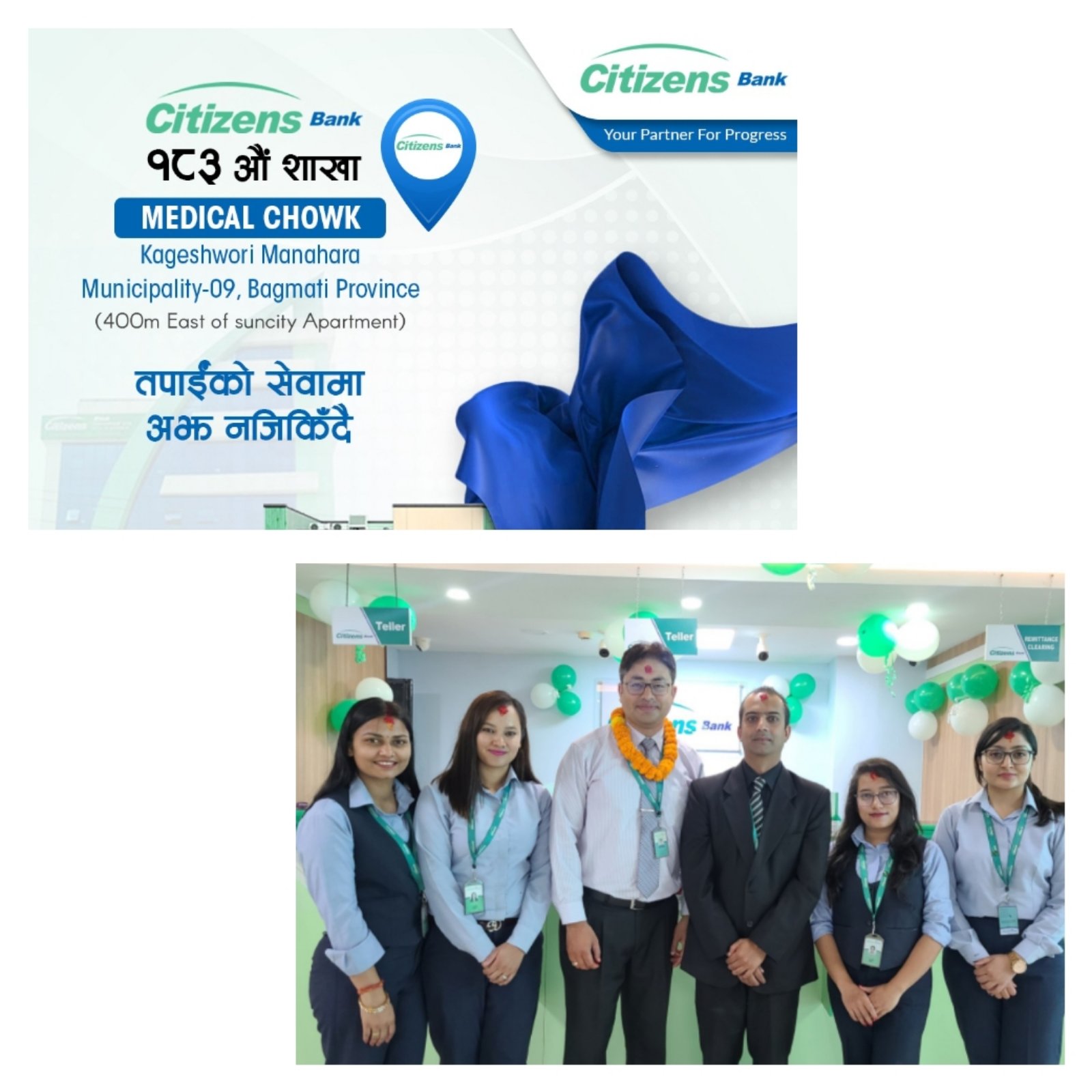 बुधबार उक्त शाखा कार्यालयमा पूजापाठ गरी बैंकिङ्ग कारोवारको सुरुवात गरिएको बैंकले जानकारी दिएको छ । यो संगै काठमाडौं उपत्यका भित्र सिटिजन्स बैंकको ३६ शाखा संचालनमा आएको बैंकको भनाई छ । सुविधा सम्पन्न यस शाखाहरु मार्फत ग्राहकहरुको वित्तीय आवश्यकता पुरा गर्न आवश्यक सम्पूर्ण रिटेल बैकिंग सेवा प्रदान गर्नुका साथै साना तथा कर्पोरट व्यवसायीहरुमाझ वित्तीय पहुँच पु¥याँउने लक्ष्य बैंकले राखेको छ । सुविधाजनक बचत खाता योजना, मुद्दती निक्षेप योजना, लकर सेवा, ए.टि.एम.सेवा, घर तथा सवारी कर्जा, साना व्यवसायी कर्जा, लगायतका वित्तीय सेवाहरु छिटो, छरितो, चुस्त र दुरुस्त रूपमा ग्राहकहरुलाई प्रदान गर्ने प्रतिबद्धता बैंकले जनाएको छ ।