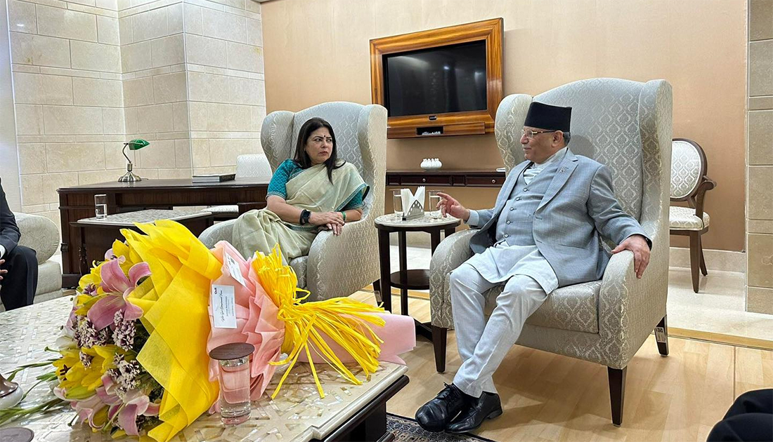 बुधबार दिउँसो नयाँदिल्ली पुगेका प्रधानमन्त्री प्रचण्डलाई इन्दिरा गान्धी अन्तर्राष्ट्रिय विमानस्थलमा भारतीय विदेश राज्यमन्त्री मिनाक्षी लेखीले स्वागत गरेकी हुन् ।