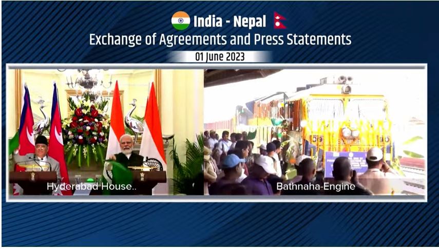 भारत भ्रमणमा रहेका प्रधानमन्त्री पुष्पकमल दाहाल प्रचण्ड र भारतीय प्रधानमन्त्री नरेन्द्र मोदीेले बथनाहाबाट विराटनगर कस्टम यार्डसम्मको कार्गो रेल सेवाको उद्घाटन गरेका छन् ।