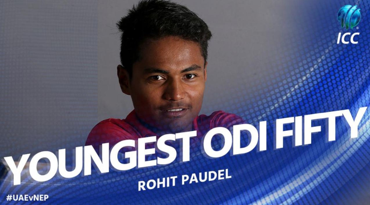 पाकिस्तानका साहिद अफ्रिदीले १६ वर्ष २ सय १७ दिनमा अर्धशतक पूरा गरेका थिए । रोहितको अर्धशतकसँगै नेपालले युएईमाथि १ सय ४५ रनको सानदार जितसमेत निकालेको छ ।