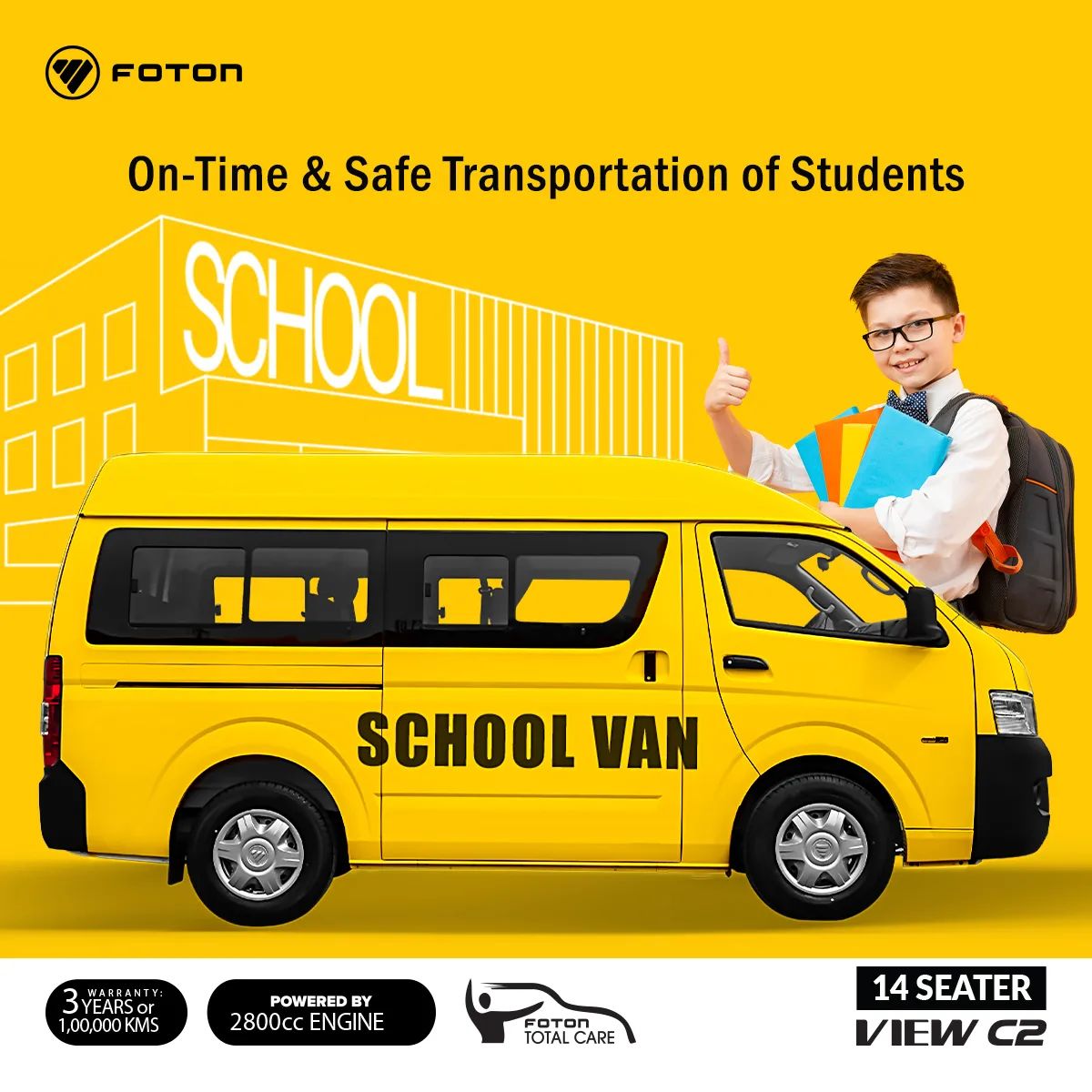 भरपर्दो र विद्यार्थी–केन्द्रित भ्यानहरू उपलब्ध गराउने अग्रपङ्क्तिमा रहेको फोटोन मोटर्सले आफ्ना छोराछोरीहरू सक्षम हातमा छन् भनी बुझेर अभिभावक र शैक्षिक संस्थाहरूले मानसिक शान्ति पाउन सक्छ न्यतयल: यतयचक ले नेपालभरका विद्यार्थीहरूका लागि सुरक्षित र रमाइलो यात्रा सुनिश्चित गर्दै विद्यालय यातायातको आविष्कारमा नेतृत्व गरिरहेको छ ।