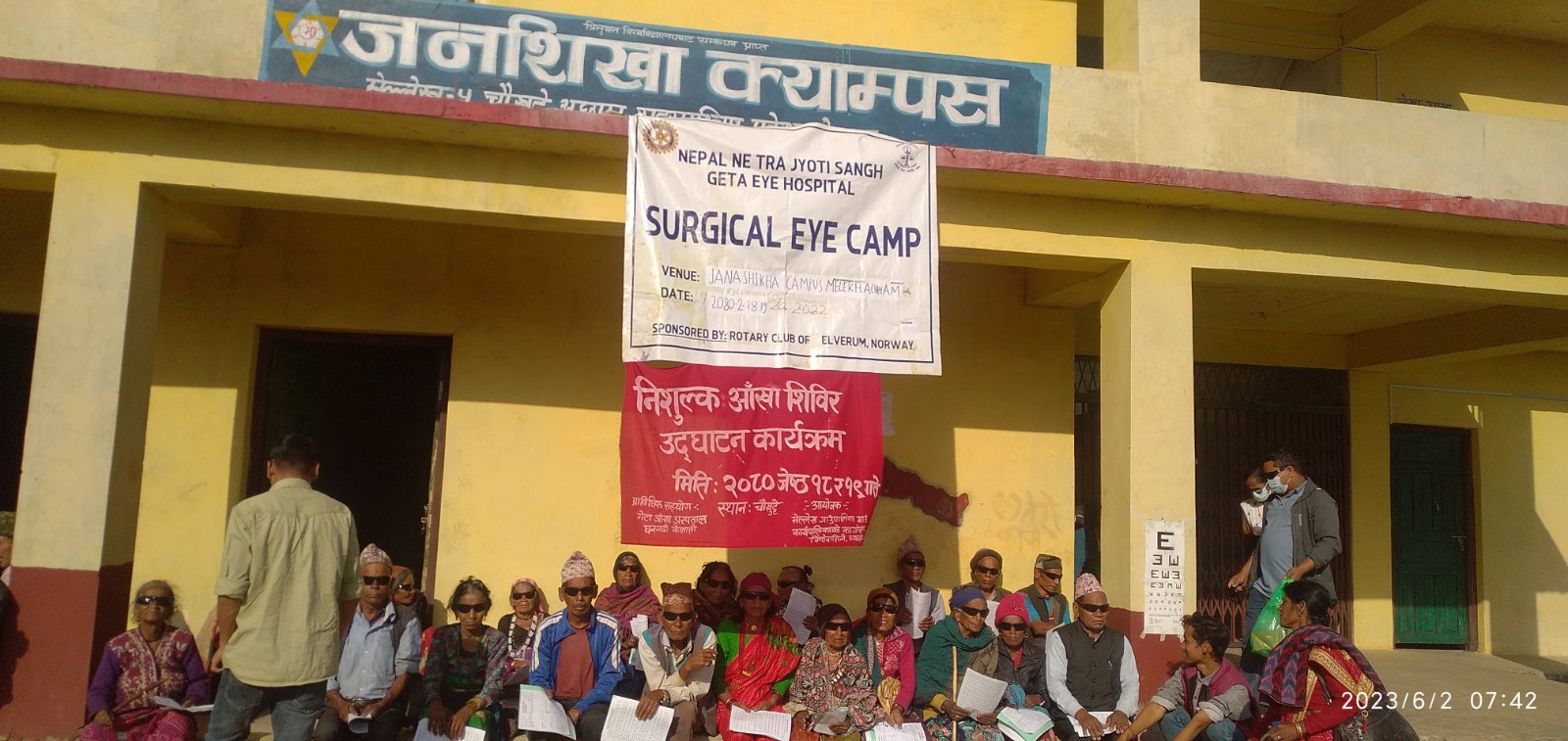 नेत्रज्योति संघ, गेटा आँखा अस्पताल र स्थानिय तहहरुको संयुक्त आयोजनामा डोटी जिल्लाका दुई र अछाम जिल्लाका एक स्थानिय तहमा आँखा शिविर सञ्चालन गरिएको हो । तिनवटा आँखा शिविर मार्फत १ हजार १ सय ४१ जना बिरामीको निःशुल्क आँखा परिक्षण गरि १८८ जनाको मोतियाबिन्दुको निःशुल्क शल्यक्रिया समेत गरिएको छ । पहुुँच र पैसाको अभावमा कोहि पनि नागरिक दृष्टिविहिन भएर बस्न नपरोस भन्ने हेतुले संघले देशका विभिन्न क्षेत्रहरुमा निःशुल्क आँखा शिविरहरु संचालन गर्दैै आइरहेको छ ।
