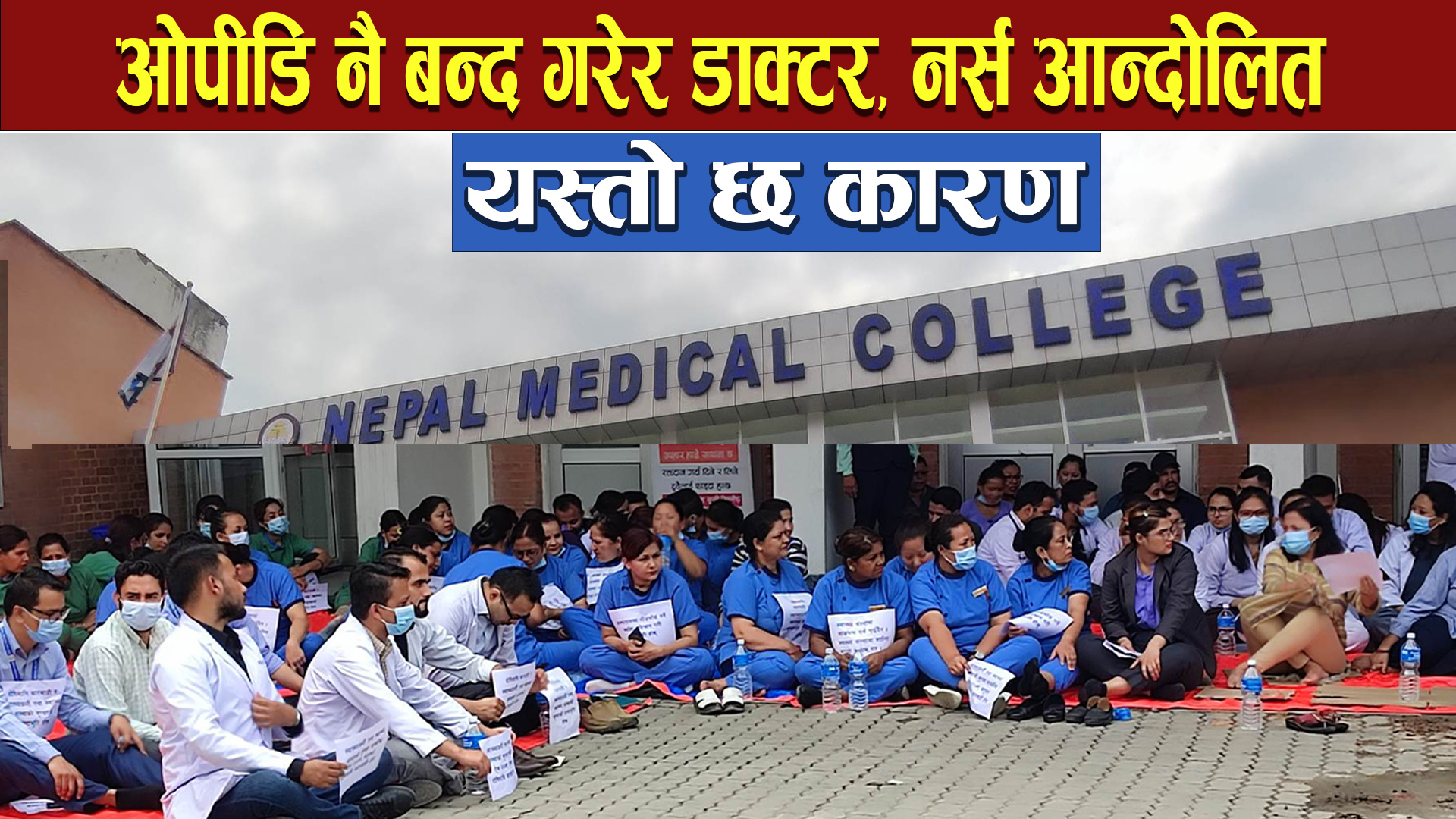 आपीडि सेवा बन्द गरेर एनएमसीका स्वास्थ्यकर्मी आन्दोलित (भिडियोसहित)