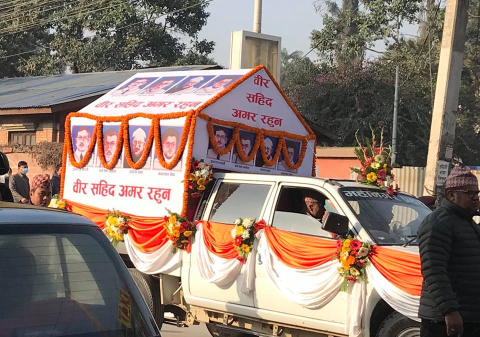आज (बुधवार) माघ १६ गते प्रजातन्त्र स्थापना एवं पुनस्र्थापना तथा विभिन्न कालखण्डका स्वतन्त्रताका लागि जीवन आहुति दिने शहीदको सम्झनामा विविध कार्यक्रम गरी शहीद दिवस मनाउन लागिएको हो ।
