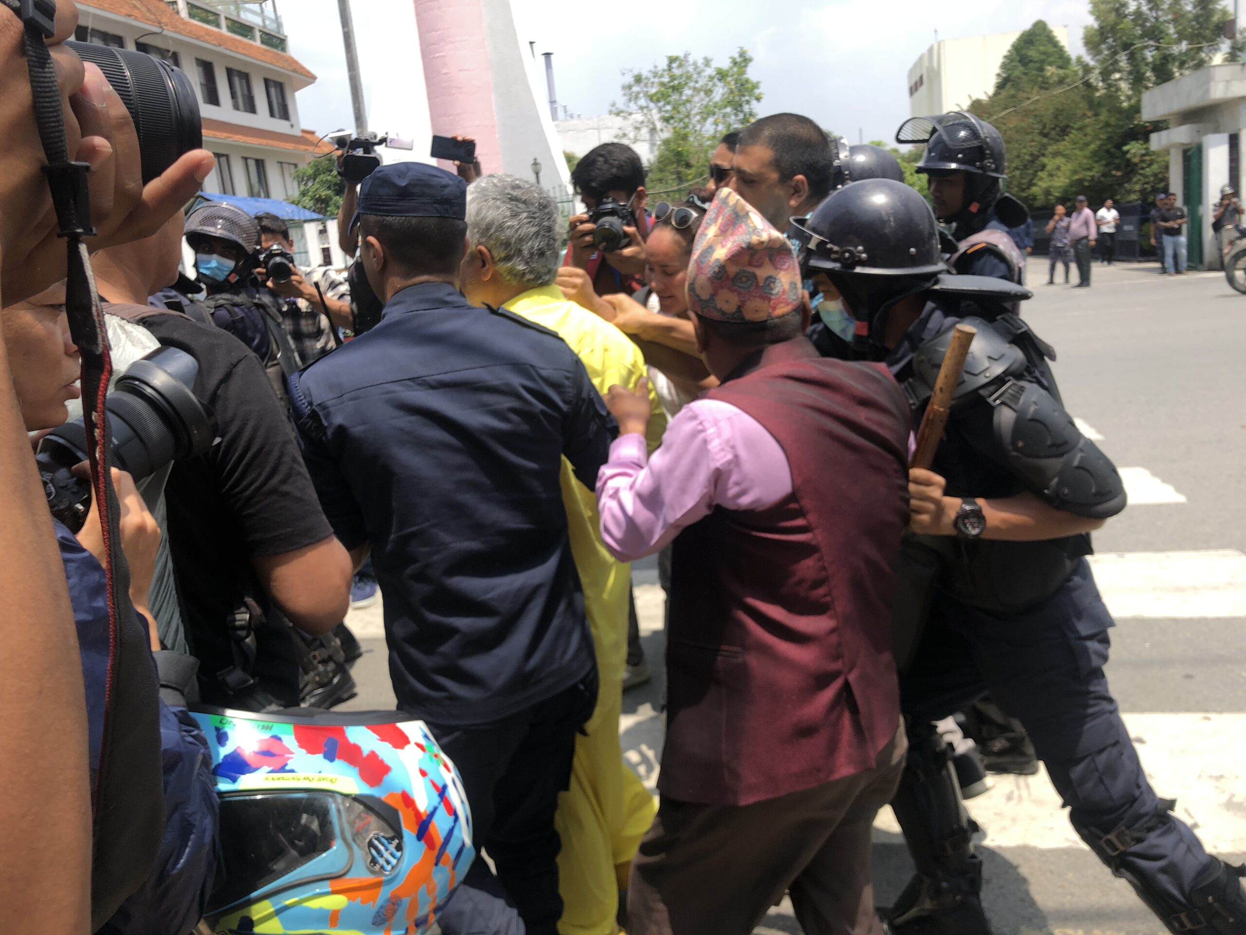 दिउँसो १ बजे संसद भवन नयाँ बानेश्वर अगाडि प्रदर्शन शुरु हुनासाथ प्रहरीले शान्ति समाजका संस्थापक सभापति कृष्ण पहाडी, नागरिक अगुवा डा. केदारनरसिह के.सी, शान्ति समाजका सल्लाहकार उत्तम पुडासैनी, सचिव चन्द्रमणी बञ्जारा, कोषाध्यक्ष किरण ढकाल, अधिकारकर्मीहरु बलबहादुर गाहा मगर, दिवाकर पुडासैनी, गिता तिमल्सिना, भगवान पुडासैनी, उमा गौतम, रुपा गिरी, विकास थापा, तुलसीराम भण्डारी, दुर्गाप्रसाद सापकोटा, ईश्वरी नेपाल, उपेन्द्र कुइकेलसहित १६ अधिकारकर्मीलाई गिरफ्तार गरेको हो । गिरफ्तार अधिकारकर्मीहरुलाई नेपाल पुलिस क्लव भृकुटीमण्डपमा राखिएको छ ।