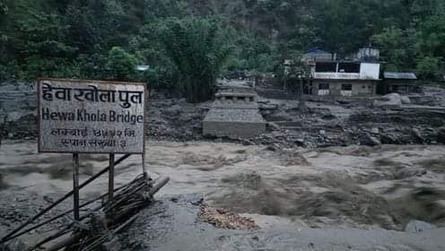 आइतबारको बाढीले मेची राजमार्गको ताप्लेजुङ र पाँचथर जोड्ने हेवा खोलाको पुल बगाएको थियो । त्यहाँको यातायात आवागमन ठप्प हुँदा बेपत्ता नागरिकको खोजीमा समस्या भएको छ ।