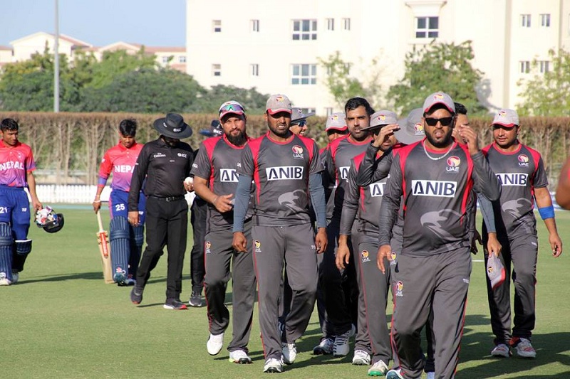 युएईका लागि सिपी रिज्वानले सर्वाधिक ४४ रनको योगदान दिए । ओपनर ब्याट्सम्यान आश्फाक अहमेद मात्र ४ रन बनाएर आउट भए । साइमन अन्वारले १४ रन, मोहम्मद बोटाले ११ रन, गुलाम शाब्बेरले ६ रन तथा कप्तान मोहम्मद नाभिद मात्र ६ रन बनाएर पेभेलिएनमा फर्किए ।